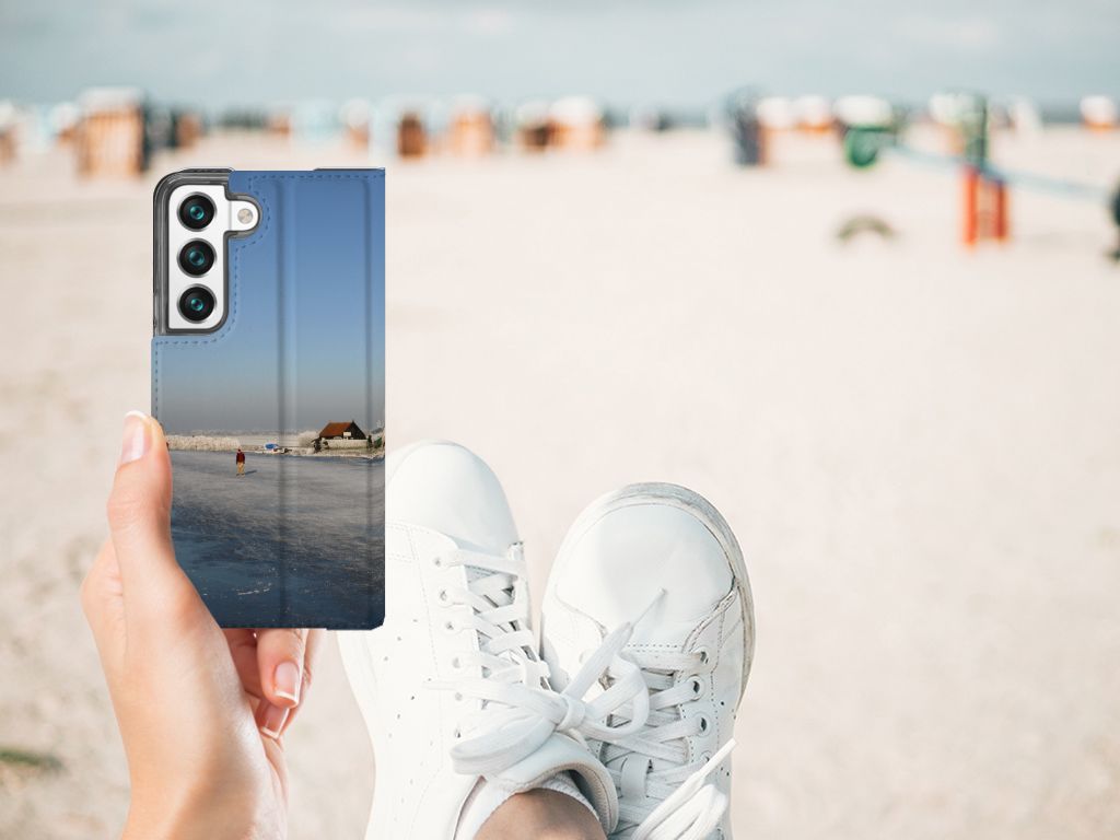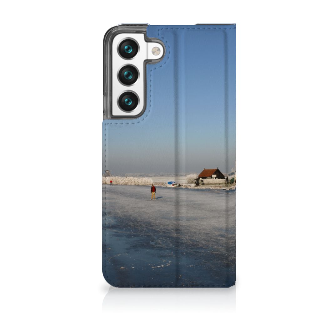 Deze mooie Samsung Galaxy S22 Book Cover met schaatsers is een typisch Hollands product. Schaatsen is een van de oudste Nederlandse volkssporten en wordt van jongs af aan geleerd. Hoewel schaatsen ook in andere landen van het noordelijk halfrond in trek is, met name in Scandinavië (Zweden, Finland, Noorwegen), blinken Nederlanders er pas echt in uit. Mocht jij met dit hoesje met schaatsers in het buitenland aankomen zetten, dan is het meteen duidelijk waar je vandaan komt. Deze stand case is perfect op maat gemaakt en heeft een vakje voor een pasje of briefgeld. Daarnaast is de magneet aan de binnenkant zeer handig. Alle zijden van de case worden bedrukt met schaatsers en de houder aan de binnenzijde is van tpu. Dit is erg flexibel materiaal. De case heeft ook een standaard.