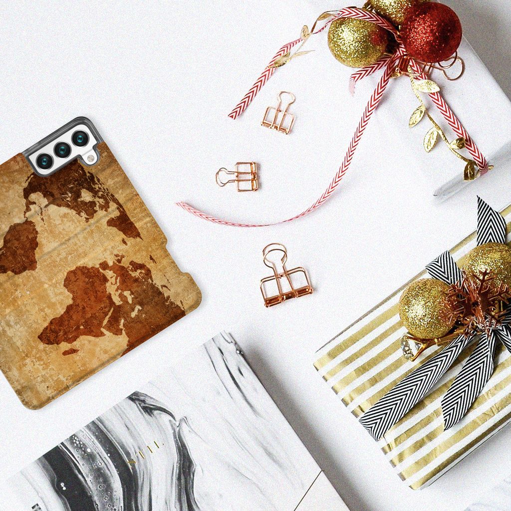Als je een hoesje koopt met een wereldkaart, kun jij op veilige wijze met je smartphone rond de wereld reizen. Ga je zonder een boekhoesje met wereldkaart het buitenland verkennen, dan loop je veel te groot risico dat je stukken krijgt aan je smartphone. Met als gevolg dat je de belangrijke gebeurtenissen op je reis wellicht niet meer vast kunt leggen om door te sturen aan je vrienden. In het slechtste geval wordt jouw toestel zonder een smartphone hoesje met wereldkaart onbruikbaar. Wij kunnen de wereldkaart bedrukken op een stand case. Een Samsung Galaxy S22 Book Cover beschermt jouw telefoon aan alle kanten en beschikt over een 1 opbergvakje en een speciale standaard. Het hoesje wordt afgesloten met een magneet aan de binnenzijde. De houder aan de binnenzijde is van TPU. Dit stand hoesje met wereldkaart is voor een zeer laag bedrag te bestellen.