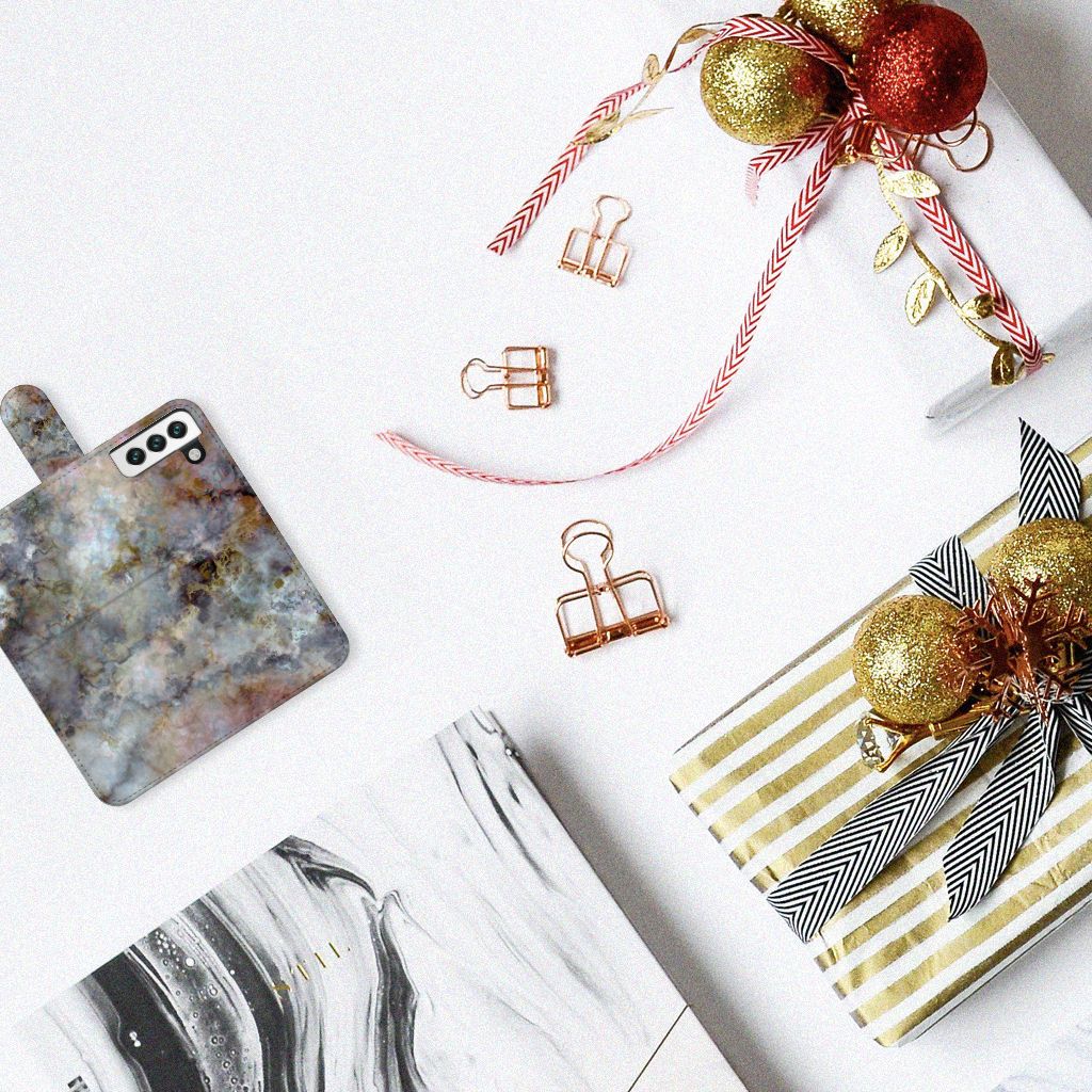 Samsung Galaxy S22 Bookcase met ruimte voor 3 pasjes Marmer Grijs