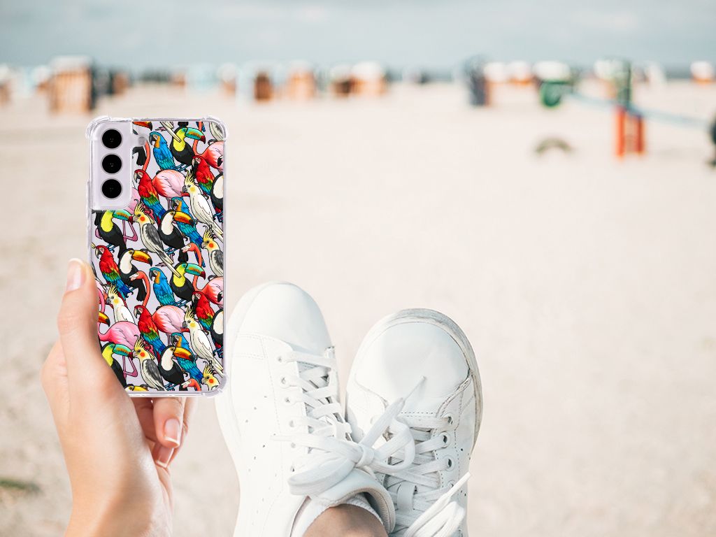 Ben je op zoek naar een uniek telefoonhoesje voor je Samsung Galaxy S22? Dan ben je bij B2C Telecom aan het juiste adres! Speciaal voor jou hebben we dit prachtige Birds design in onze collectie hoesjes opgenomen. Het design wordt bedrukt op een Case Anti-shock en is gemaakt van flexibel rubber. Het hoesje is perfect voor de actieve smartphonegebruiker door de opstaande randen/hoeken. Denk aan mensen die veel sporten, reizen of wandelen en net iets meer zekerheid willen als het op hun geliefde telefoon aankomt. Het design wordt alleen aan de bovenkant van het hoesje bedrukt en de randen blijven transparant. Aan de zijkanten zijn uitsparingen gemaakt waardoor je met gemak alle knoppen en poorten kunt bedienen. Wij adviseren om dit hoesje in combinatie met een screenprotector te gebruiken voor een langere levensduur van je telefoon. Wil je dit hoesje nog iets extra's geven? Voeg dan gratis je naam of een quote toe! Is dit design hoesje toch niet helemaal wat je zocht? Ontwerp dan zelf een hoesje in ons ontwerpprogramma.