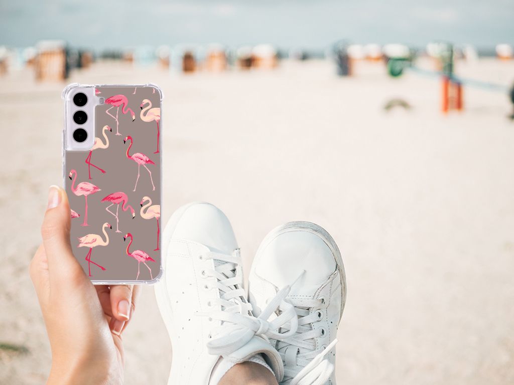 Ben je op zoek naar een uniek telefoonhoesje voor je Samsung Galaxy S22? Dan ben je bij B2C Telecom aan het juiste adres! Speciaal voor jou hebben we dit prachtige Flamingo design in onze collectie hoesjes opgenomen. Het design wordt bedrukt op een Case Anti-shock en is gemaakt van flexibel rubber. Het hoesje is perfect voor de actieve smartphonegebruiker door de opstaande randen/hoeken. Denk aan mensen die veel sporten, reizen of wandelen en net iets meer zekerheid willen als het op hun geliefde telefoon aankomt. Het design wordt alleen aan de bovenkant van het hoesje bedrukt en de randen blijven transparant. Aan de zijkanten zijn uitsparingen gemaakt waardoor je met gemak alle knoppen en poorten kunt bedienen. Wij adviseren om dit hoesje in combinatie met een screenprotector te gebruiken voor een langere levensduur van je telefoon. Wil je dit hoesje nog iets extra's geven? Voeg dan gratis je naam of een quote toe! Is dit design hoesje toch niet helemaal wat je zocht? Ontwerp dan zelf een hoesje in ons ontwerpprogramma.