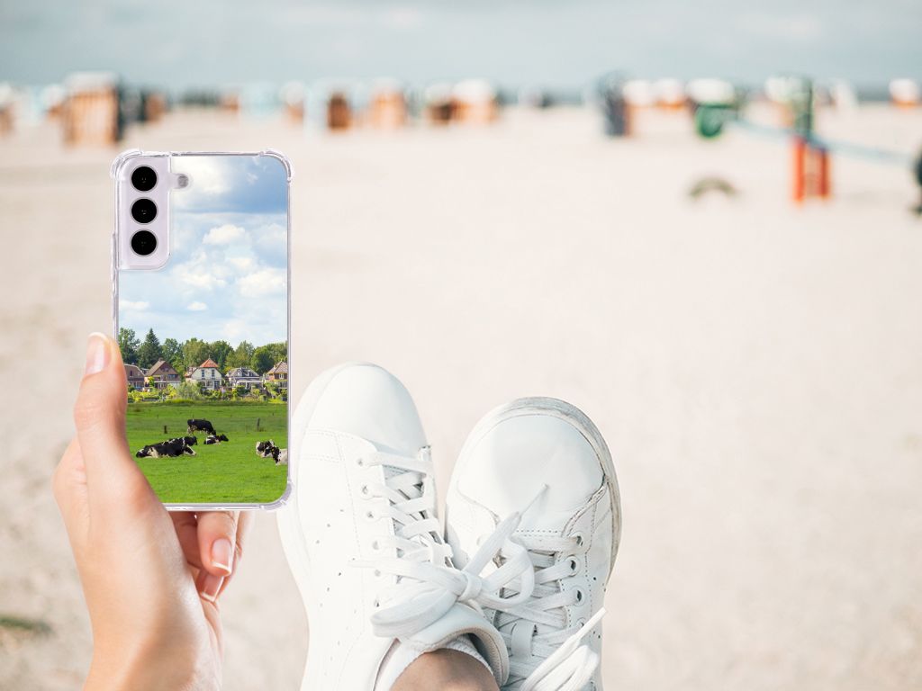Ben je op zoek naar een uniek telefoonhoesje voor je Samsung Galaxy S22? Dan ben je bij B2C Telecom aan het juiste adres! Speciaal voor jou hebben we dit prachtige Koeien design in onze collectie hoesjes opgenomen. Het design wordt bedrukt op een Case Anti-shock en is gemaakt van flexibel rubber. Het hoesje is perfect voor de actieve smartphonegebruiker door de opstaande randen/hoeken. Denk aan mensen die veel sporten, reizen of wandelen en net iets meer zekerheid willen als het op hun geliefde telefoon aankomt. Het design wordt alleen aan de bovenkant van het hoesje bedrukt en de randen blijven transparant. Aan de zijkanten zijn uitsparingen gemaakt waardoor je met gemak alle knoppen en poorten kunt bedienen. Wij adviseren om dit hoesje in combinatie met een screenprotector te gebruiken voor een langere levensduur van je telefoon. Wil je dit hoesje nog iets extra's geven? Voeg dan gratis je naam of een quote toe! Is dit design hoesje toch niet helemaal wat je zocht? Ontwerp dan zelf een hoesje in ons ontwerpprogramma.