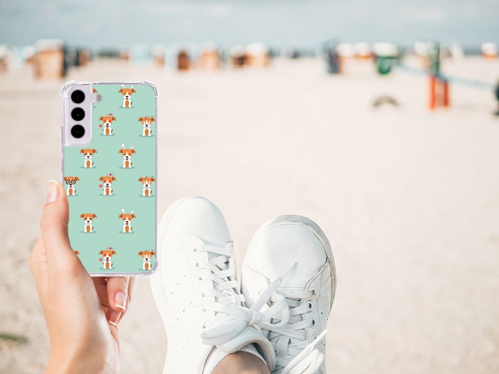 Ben je op zoek naar een uniek telefoonhoesje voor je Samsung Galaxy S22? Dan ben je bij B2C Telecom aan het juiste adres! Speciaal voor jou hebben we dit prachtige Pups design in onze collectie hoesjes opgenomen. Het design wordt bedrukt op een Case Anti-shock en is gemaakt van flexibel rubber. Het hoesje is perfect voor de actieve smartphonegebruiker door de opstaande randen/hoeken. Denk aan mensen die veel sporten, reizen of wandelen en net iets meer zekerheid willen als het op hun geliefde telefoon aankomt. Het design wordt alleen aan de bovenkant van het hoesje bedrukt en de randen blijven transparant. Aan de zijkanten zijn uitsparingen gemaakt waardoor je met gemak alle knoppen en poorten kunt bedienen. Wij adviseren om dit hoesje in combinatie met een screenprotector te gebruiken voor een langere levensduur van je telefoon. Wil je dit hoesje nog iets extra's geven? Voeg dan gratis je naam of een quote toe! Is dit design hoesje toch niet helemaal wat je zocht? Ontwerp dan zelf een hoesje in ons ontwerpprogramma.