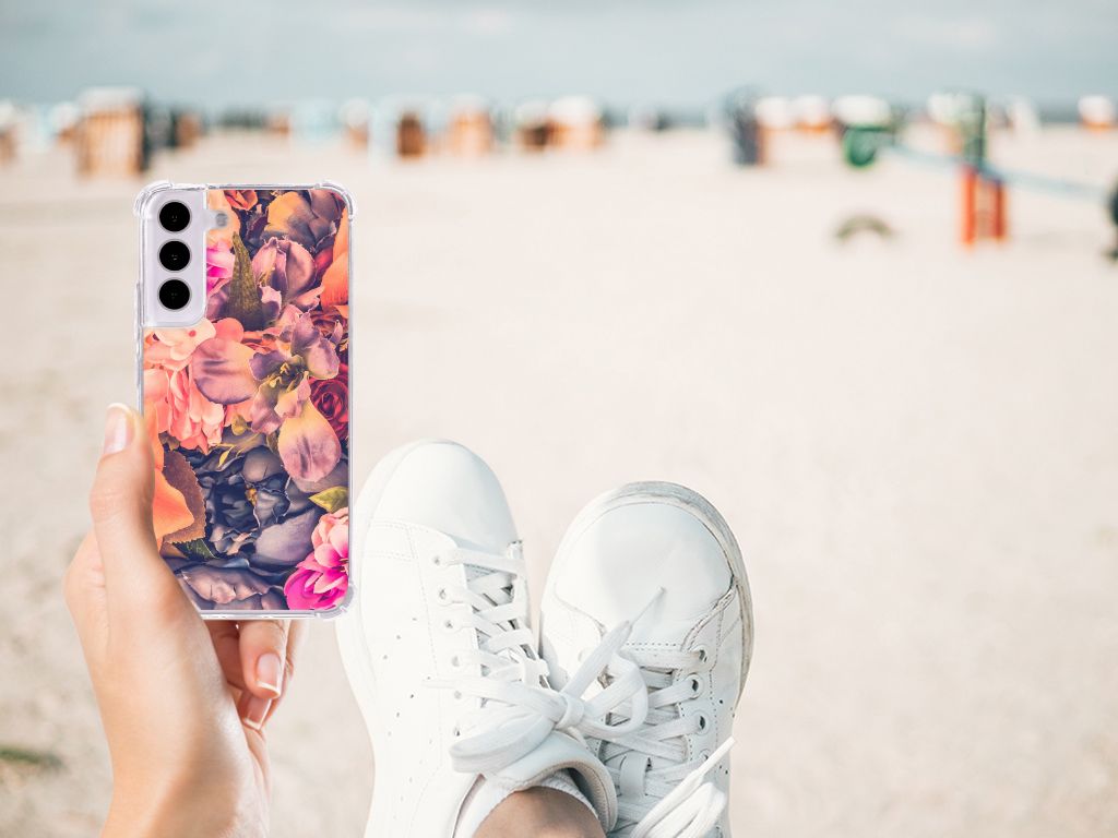 Ben je op zoek naar een uniek telefoonhoesje voor je Samsung Galaxy S22? Dan ben je bij B2C Telecom aan het juiste adres! Speciaal voor jou hebben we dit prachtige Bosje Bloemen design in onze collectie hoesjes opgenomen. Het design wordt bedrukt op een Case en is gemaakt van flexibel rubber. Het hoesje is perfect voor de actieve smartphonegebruiker door de opstaande randen/hoeken. Denk aan mensen die veel sporten, reizen of wandelen en net iets meer zekerheid willen als het op hun geliefde telefoon aankomt. Het design wordt alleen aan de bovenkant van het hoesje bedrukt en de randen blijven transparant. Aan de zijkanten zijn uitsparingen gemaakt waardoor je met gemak alle knoppen en poorten kunt bedienen. Wij adviseren om dit hoesje in combinatie met een screenprotector te gebruiken voor een langere levensduur van je telefoon. Wil je dit hoesje nog iets extra's geven? Voeg dan gratis je naam of een quote toe! Is dit design hoesje toch niet helemaal wat je zocht? Ontwerp dan zelf een hoesje in ons ontwerpprogramma.