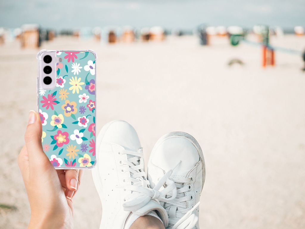 Ben je op zoek naar een uniek telefoonhoesje voor je Samsung Galaxy S22? Dan ben je bij B2C Telecom aan het juiste adres! Speciaal voor jou hebben we dit prachtige Flower Power design in onze collectie hoesjes opgenomen. Het design wordt bedrukt op een Case en is gemaakt van flexibel rubber. Het hoesje is perfect voor de actieve smartphonegebruiker door de opstaande randen/hoeken. Denk aan mensen die veel sporten, reizen of wandelen en net iets meer zekerheid willen als het op hun geliefde telefoon aankomt. Het design wordt alleen aan de bovenkant van het hoesje bedrukt en de randen blijven transparant. Aan de zijkanten zijn uitsparingen gemaakt waardoor je met gemak alle knoppen en poorten kunt bedienen. Wij adviseren om dit hoesje in combinatie met een screenprotector te gebruiken voor een langere levensduur van je telefoon. Wil je dit hoesje nog iets extra's geven? Voeg dan gratis je naam of een quote toe! Is dit design hoesje toch niet helemaal wat je zocht? Ontwerp dan zelf een hoesje in ons ontwerpprogramma.