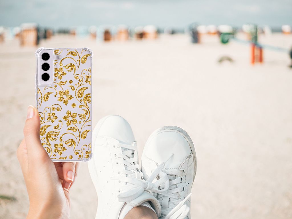Ben je op zoek naar een uniek telefoonhoesje voor je Samsung Galaxy S22? Dan ben je bij B2C Telecom aan het juiste adres! Speciaal voor jou hebben we dit prachtige Gouden Bloemen design in onze collectie hoesjes opgenomen. Het design wordt bedrukt op een Case en is gemaakt van flexibel rubber. Het hoesje is perfect voor de actieve smartphonegebruiker door de opstaande randen/hoeken. Denk aan mensen die veel sporten, reizen of wandelen en net iets meer zekerheid willen als het op hun geliefde telefoon aankomt. Het design wordt alleen aan de bovenkant van het hoesje bedrukt en de randen blijven transparant. Aan de zijkanten zijn uitsparingen gemaakt waardoor je met gemak alle knoppen en poorten kunt bedienen. Wij adviseren om dit hoesje in combinatie met een screenprotector te gebruiken voor een langere levensduur van je telefoon. Wil je dit hoesje nog iets extra's geven? Voeg dan gratis je naam of een quote toe! Is dit design hoesje toch niet helemaal wat je zocht? Ontwerp dan zelf een hoesje in ons ontwerpprogramma.