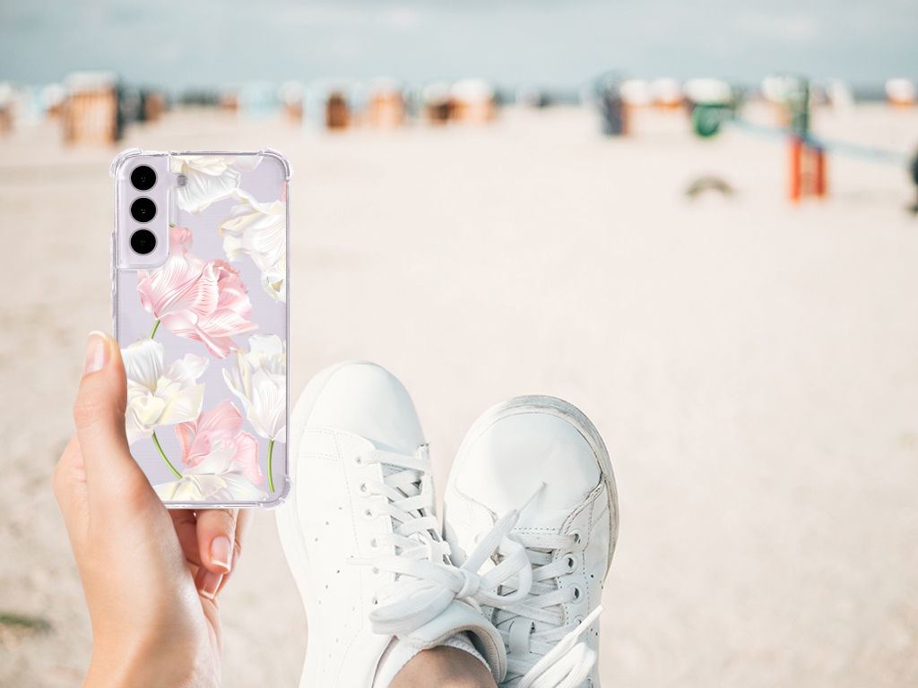 Ben je op zoek naar een uniek telefoonhoesje voor je Samsung Galaxy S22? Dan ben je bij B2C Telecom aan het juiste adres! Speciaal voor jou hebben we dit prachtige Lovely Flowers design in onze collectie hoesjes opgenomen. Het design wordt bedrukt op een Case en is gemaakt van flexibel rubber. Het hoesje is perfect voor de actieve smartphonegebruiker door de opstaande randen/hoeken. Denk aan mensen die veel sporten, reizen of wandelen en net iets meer zekerheid willen als het op hun geliefde telefoon aankomt. Het design wordt alleen aan de bovenkant van het hoesje bedrukt en de randen blijven transparant. Aan de zijkanten zijn uitsparingen gemaakt waardoor je met gemak alle knoppen en poorten kunt bedienen. Wij adviseren om dit hoesje in combinatie met een screenprotector te gebruiken voor een langere levensduur van je telefoon. Wil je dit hoesje nog iets extra's geven? Voeg dan gratis je naam of een quote toe! Is dit design hoesje toch niet helemaal wat je zocht? Ontwerp dan zelf een hoesje in ons ontwerpprogramma.