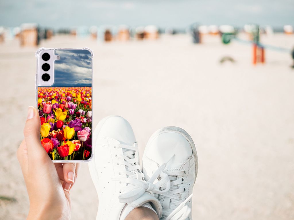 Ben je op zoek naar een uniek telefoonhoesje voor je Samsung Galaxy S22? Dan ben je bij B2C Telecom aan het juiste adres! Speciaal voor jou hebben we dit prachtige Tulpen design in onze collectie hoesjes opgenomen. Het design wordt bedrukt op een Case en is gemaakt van flexibel rubber. Het hoesje is perfect voor de actieve smartphonegebruiker door de opstaande randen/hoeken. Denk aan mensen die veel sporten, reizen of wandelen en net iets meer zekerheid willen als het op hun geliefde telefoon aankomt. Het design wordt alleen aan de bovenkant van het hoesje bedrukt en de randen blijven transparant. Aan de zijkanten zijn uitsparingen gemaakt waardoor je met gemak alle knoppen en poorten kunt bedienen. Wij adviseren om dit hoesje in combinatie met een screenprotector te gebruiken voor een langere levensduur van je telefoon. Wil je dit hoesje nog iets extra's geven? Voeg dan gratis je naam of een quote toe! Is dit design hoesje toch niet helemaal wat je zocht? Ontwerp dan zelf een hoesje in ons ontwerpprogramma.