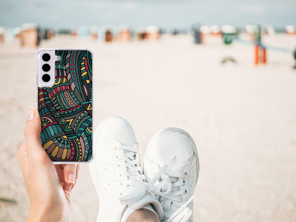 Ben je op zoek naar een uniek telefoonhoesje voor je Samsung Galaxy S22? Dan ben je bij B2C Telecom aan het juiste adres! Speciaal voor jou hebben we dit prachtige Aztec design in onze collectie hoesjes opgenomen. Het design wordt bedrukt op een Doorzichtige Silicone Hoesje en is gemaakt van flexibel rubber. Het hoesje is perfect voor de actieve smartphonegebruiker door de opstaande randen/hoeken. Denk aan mensen die veel sporten, reizen of wandelen en net iets meer zekerheid willen als het op hun geliefde telefoon aankomt. Het design wordt alleen aan de bovenkant van het hoesje bedrukt en de randen blijven transparant. Aan de zijkanten zijn uitsparingen gemaakt waardoor je met gemak alle knoppen en poorten kunt bedienen. Wij adviseren om dit hoesje in combinatie met een screenprotector te gebruiken voor een langere levensduur van je telefoon. Wil je dit hoesje nog iets extra's geven? Voeg dan gratis je naam of een quote toe! Is dit design hoesje toch niet helemaal wat je zocht? Ontwerp dan zelf een hoesje in ons ontwerpprogramma.
