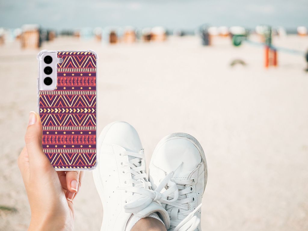 Ben je op zoek naar een uniek telefoonhoesje voor je Samsung Galaxy S22? Dan ben je bij B2C Telecom aan het juiste adres! Speciaal voor jou hebben we dit prachtige Aztec Purple design in onze collectie hoesjes opgenomen. Het design wordt bedrukt op een Doorzichtige Silicone Hoesje en is gemaakt van flexibel rubber. Het hoesje is perfect voor de actieve smartphonegebruiker door de opstaande randen/hoeken. Denk aan mensen die veel sporten, reizen of wandelen en net iets meer zekerheid willen als het op hun geliefde telefoon aankomt. Het design wordt alleen aan de bovenkant van het hoesje bedrukt en de randen blijven transparant. Aan de zijkanten zijn uitsparingen gemaakt waardoor je met gemak alle knoppen en poorten kunt bedienen. Wij adviseren om dit hoesje in combinatie met een screenprotector te gebruiken voor een langere levensduur van je telefoon. Wil je dit hoesje nog iets extra's geven? Voeg dan gratis je naam of een quote toe! Is dit design hoesje toch niet helemaal wat je zocht? Ontwerp dan zelf een hoesje in ons ontwerpprogramma.