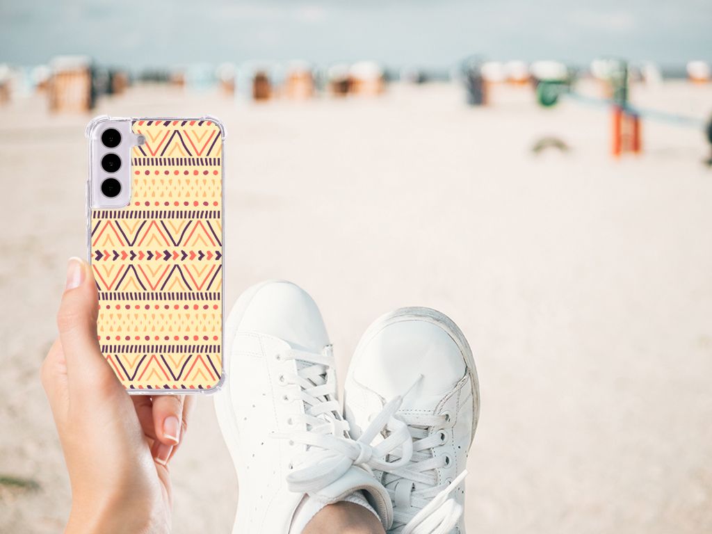 Ben je op zoek naar een uniek telefoonhoesje voor je Samsung Galaxy S22? Dan ben je bij B2C Telecom aan het juiste adres! Speciaal voor jou hebben we dit prachtige Aztec Yellow design in onze collectie hoesjes opgenomen. Het design wordt bedrukt op een Doorzichtige Silicone Hoesje en is gemaakt van flexibel rubber. Het hoesje is perfect voor de actieve smartphonegebruiker door de opstaande randen/hoeken. Denk aan mensen die veel sporten, reizen of wandelen en net iets meer zekerheid willen als het op hun geliefde telefoon aankomt. Het design wordt alleen aan de bovenkant van het hoesje bedrukt en de randen blijven transparant. Aan de zijkanten zijn uitsparingen gemaakt waardoor je met gemak alle knoppen en poorten kunt bedienen. Wij adviseren om dit hoesje in combinatie met een screenprotector te gebruiken voor een langere levensduur van je telefoon. Wil je dit hoesje nog iets extra's geven? Voeg dan gratis je naam of een quote toe! Is dit design hoesje toch niet helemaal wat je zocht? Ontwerp dan zelf een hoesje in ons ontwerpprogramma.