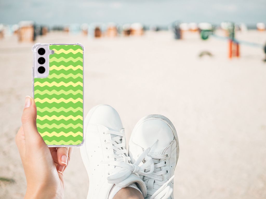 Ben je op zoek naar een uniek telefoonhoesje voor je Samsung Galaxy S22? Dan ben je bij B2C Telecom aan het juiste adres! Speciaal voor jou hebben we dit prachtige Waves Green design in onze collectie hoesjes opgenomen. Het design wordt bedrukt op een Doorzichtige Silicone Hoesje en is gemaakt van flexibel rubber. Het hoesje is perfect voor de actieve smartphonegebruiker door de opstaande randen/hoeken. Denk aan mensen die veel sporten, reizen of wandelen en net iets meer zekerheid willen als het op hun geliefde telefoon aankomt. Het design wordt alleen aan de bovenkant van het hoesje bedrukt en de randen blijven transparant. Aan de zijkanten zijn uitsparingen gemaakt waardoor je met gemak alle knoppen en poorten kunt bedienen. Wij adviseren om dit hoesje in combinatie met een screenprotector te gebruiken voor een langere levensduur van je telefoon. Wil je dit hoesje nog iets extra's geven? Voeg dan gratis je naam of een quote toe! Is dit design hoesje toch niet helemaal wat je zocht? Ontwerp dan zelf een hoesje in ons ontwerpprogramma.