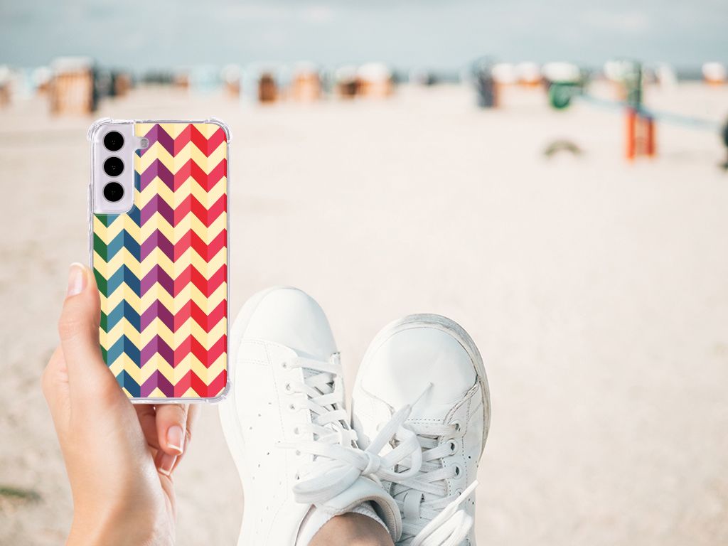 Ben je op zoek naar een uniek telefoonhoesje voor je Samsung Galaxy S22? Dan ben je bij B2C Telecom aan het juiste adres! Speciaal voor jou hebben we dit prachtige Zigzag Color design in onze collectie hoesjes opgenomen. Het design wordt bedrukt op een Doorzichtige Silicone Hoesje en is gemaakt van flexibel rubber. Het hoesje is perfect voor de actieve smartphonegebruiker door de opstaande randen/hoeken. Denk aan mensen die veel sporten, reizen of wandelen en net iets meer zekerheid willen als het op hun geliefde telefoon aankomt. Het design wordt alleen aan de bovenkant van het hoesje bedrukt en de randen blijven transparant. Aan de zijkanten zijn uitsparingen gemaakt waardoor je met gemak alle knoppen en poorten kunt bedienen. Wij adviseren om dit hoesje in combinatie met een screenprotector te gebruiken voor een langere levensduur van je telefoon. Wil je dit hoesje nog iets extra's geven? Voeg dan gratis je naam of een quote toe! Is dit design hoesje toch niet helemaal wat je zocht? Ontwerp dan zelf een hoesje in ons ontwerpprogramma.