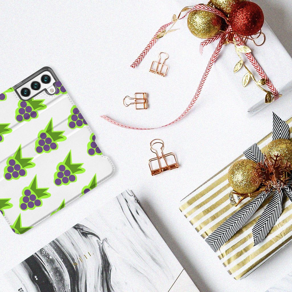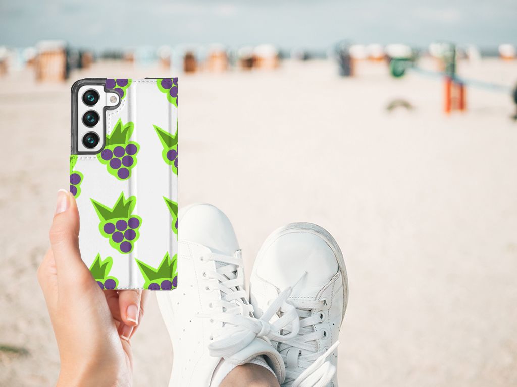 Druiven worden ook wel de ‘koningin van het fruit’ genoemd. Dus komen ze uiteraard aan bod in ons assortiment design hoesjes. Een Samsung Galaxy S22 Flip Style Cover met een tros blauwe druiven maakt je ontzettend trots. Juist omdat het zo goed past bij jouw smartphone. Doordat er veel verschillende soorten druiven bestaan - groene, rode en zelfs zwarte - is het aanbod ontzettend groot. Ons aanbod stand cases met blauwe druiven is ook zeer groot, je zult niet snel achter het net vissen. Het stand hoesje met druiven design heeft een vakje aan de binnenzijde, waarin je jouw rijbewijs of je creditcard kunt stoppen. Dit leuke stand hoesje met blauwe druiven wordt aan de binnenzijde afgesloten met een magneet. Verder klemt de tpu houder aan de binnenzijde perfect om jouw telefoon. Ben je op zoek naar hoesjes met ander fruit erop? Je komt aan je trekken als je ons assortiment design hoesjes bekijkt.