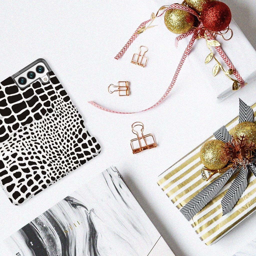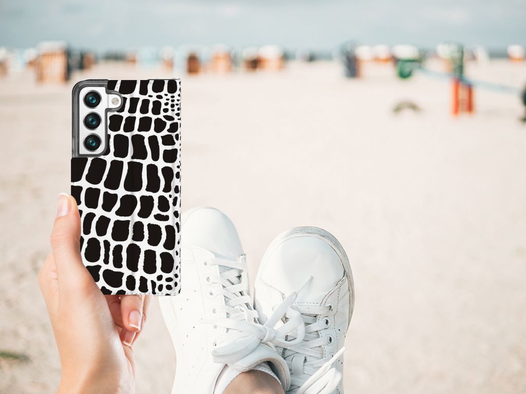 Deze stand case met zwarte en witte Slangenprint kunnen wij zeer exclusief noemen. Zeker als je er nog een bijzondere tekst van jezelf aan toevoegt, zoals je eigen naam in een sierletter. Jouw stand case krijgt dan een persoonlijke uitstraling, net nog een beetje specialer dan dit hoesje met zwarte en witte slangenprint. Wat niets afdoet van de exclusiviteit van deze stand case met zwarte en witte slangenprint. Ben jij toe aan een stoer en opvallend Samsung Galaxy S22 Hoesje maken? Pak dan dit design met print van slangenhuid als basis. Het stand hoesje met zwarte en witte slangenprint is van PU-leer (buitenzijde) en TPU (binnenzijde) en beschikt over een houder en een standaard. Verder is dit stand hoesje met slangenprint voorzien van een magnetische sluiting aan de binnenkant. Jij bent ervan verzekerd dat jouw smartphone tegen een stootje kan met dit stand hoesje met zwarte en witte slangenprint.