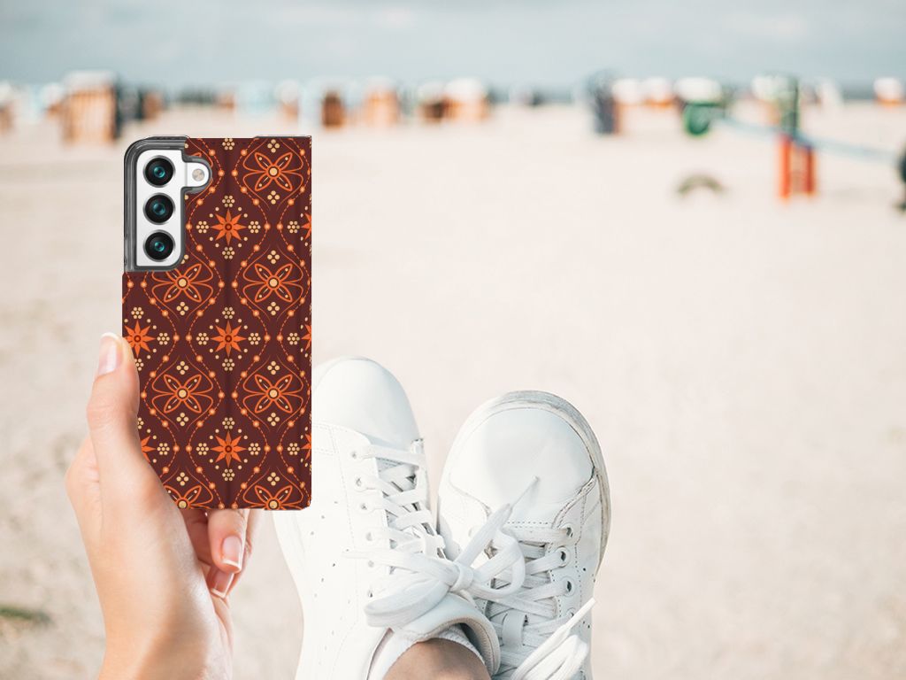Batikken is een super oude kunstvorm. Met deze methode wordt een geweven stof met verf versierd. Er zijn zulke stoffen gevonden in het Midden-Oosten en Azië van meer dan tweeduizend jaar oud. Wie had kunnen bedenken dat we zo’n mooie batik-print duizenden jaren later zelfs op telefoonhoesjes zouden terugvinden? Dit Hoesje met Magneet in voor je Samsung Galaxy S22 heeft een prachtig symmetrisch patroon. Door de bruine en oranje kleuren doet het design een beetje retro aan en is het toch subtiel te noemen. Het hoesje heeft binnenin één vakje voor een pasje en een magnetische sluiting aan de binnenkant. Verder heeft de Batik brown-hoes een houder van TPU. Het leuke van een standcase is dat je hem eenvoudig neer kunt zetten. Zo heb je je handen vrij als je bijvoorbeeld een video wilt kijken op je smartphone.