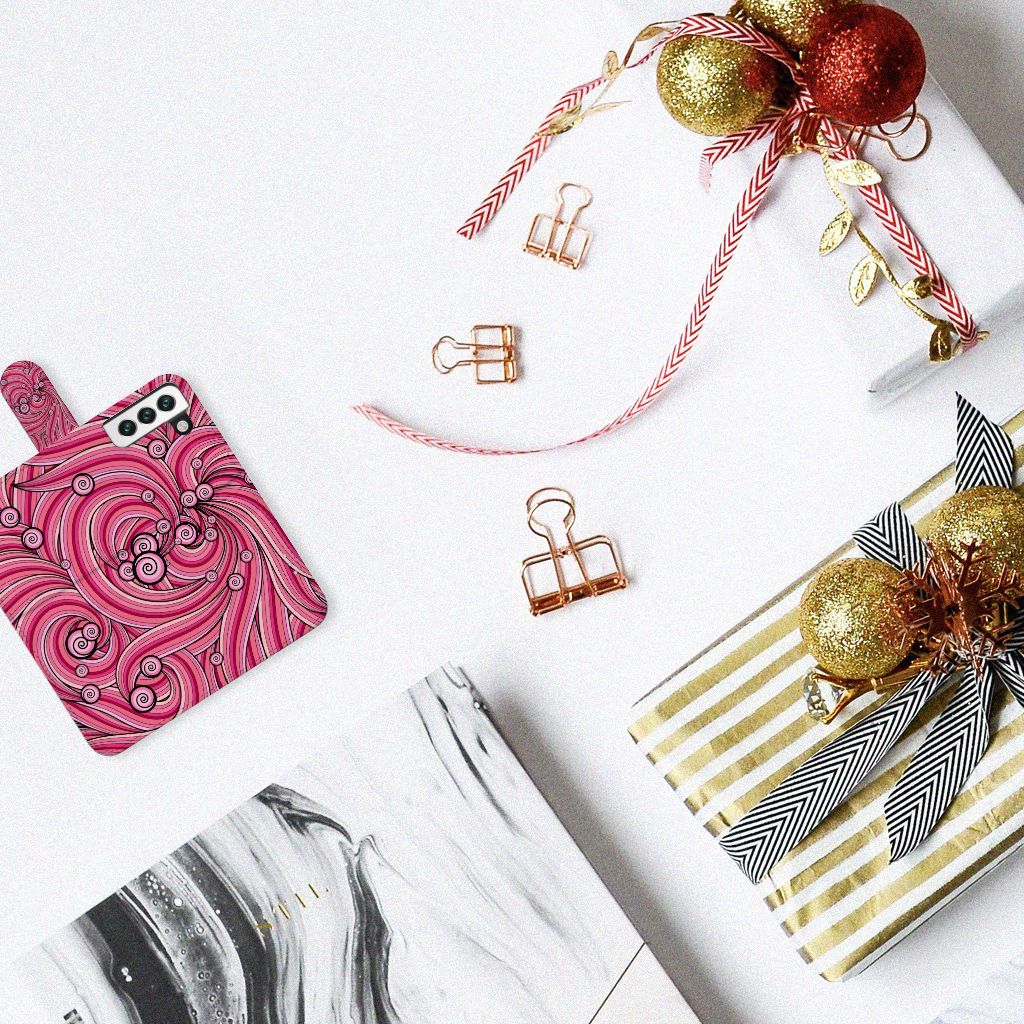 Dit mooie Samsung Galaxy S22 Hoesje met Swirl Pink is een geweldige en duurzame bescherming voor jouw smartphone. De kleuren zijn zeer subtiel op het hoesje gezet en worden op alle zijden van de case bedrukt. Dit drukwerk doen we in eigen beheer, zodat het roze en het zwart ook uitstekend tot zijn recht komen op het boekhoesje. Een boekhoesje is perfect op maat gemaakt en heeft verschillende vakjes voor pasjes en briefgeld. Daarnaast is het lipje aan de buitenkant zeer veilig. De case sluit perfect af. De houder aan de binnenzijde is van tpu en is doorzichtig. Ook het lipje aan de buitenzijde wordt in roze met zwart bedrukt. Nergens tref je een hoesje met deze kleuren aan dat zo goed past bij jouw smartphone.