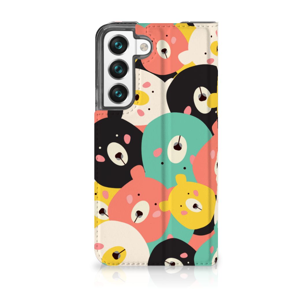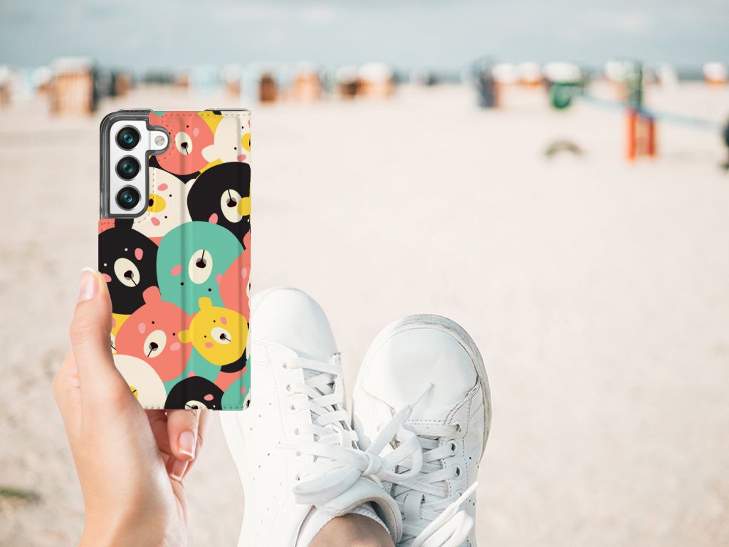 Op dit hoesje vind je een bereschattig ontwerp! Vergeef ons de woordgrap, maar hoe moeten we dit lieve ontwerp anders omschrijven? Op dit knuffelige ontwerp zie je leuke, getekende beertjes in vrolijke kleuren als geel, blauw en roze. Dankzij de contrasterende witte en zwarte beertjes vallen de felle kleurtjes nog meer op. Al met al is dit Magnet Case voor de Samsung Galaxy S22 een perfect hoesje voor de knuffelberen onder ons. Dit populaire smartphonehoesje met het Bears-design heeft één vakje voor een pasje of briefgeld en is aan alle zijden bedrukt. Met de standcase zet je je telefoon gemakkelijk neer, zodat je je handen vrij hebt als je bijvoorbeeld een video wilt kijken. De binnenkant van de standcase is van grijs PU-leer. Dat is fijn, omdat je daardoor niet snel vlekken ziet op je hoesje.