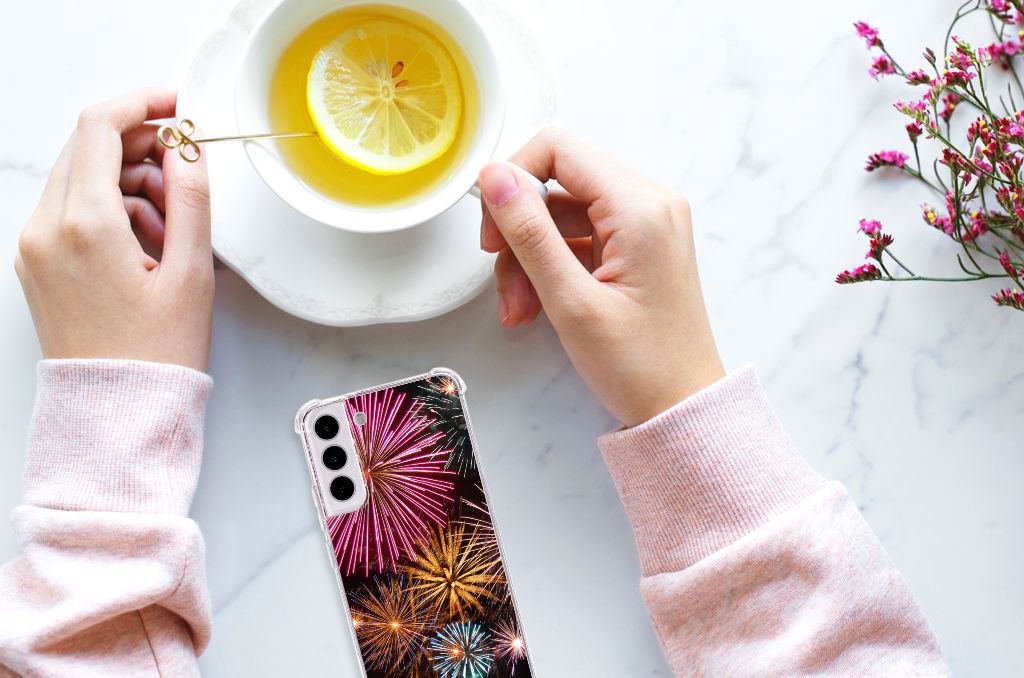 Ben je op zoek naar een uniek telefoonhoesje voor je Samsung Galaxy S22 Plus? Dan ben je bij B2C Telecom aan het juiste adres! Speciaal voor jou hebben we dit prachtige Vuurwerk design in onze collectie hoesjes opgenomen. Het design wordt bedrukt op een Anti Shock Bumper Case en is gemaakt van flexibel rubber. Het hoesje is perfect voor de actieve smartphonegebruiker door de opstaande randen/hoeken. Denk aan mensen die veel sporten, reizen of wandelen en net iets meer zekerheid willen als het op hun geliefde telefoon aankomt. Het design wordt alleen aan de bovenkant van het hoesje bedrukt en de randen blijven transparant. Aan de zijkanten zijn uitsparingen gemaakt waardoor je met gemak alle knoppen en poorten kunt bedienen. Wij adviseren om dit hoesje in combinatie met een screenprotector te gebruiken voor een langere levensduur van je telefoon. Wil je dit hoesje nog iets extra's geven? Voeg dan gratis je naam of een quote toe! Is dit design hoesje toch niet helemaal wat je zocht? Ontwerp dan zelf een hoesje in ons ontwerpprogramma.
