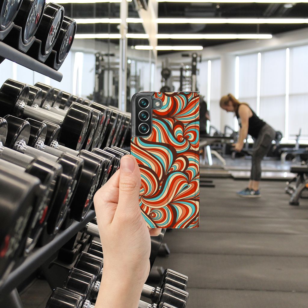 Voor de mensen die een beetje artistiek zijn, is er deze Samsung Galaxy S22 Plus Bookcase met kleuren in een soort van retro stijl. Je gaat een beetje terug in de tijd met deze stand case in allerlei felle kleuren en vreemde vormen. De opdruk op dit design hoesje is zeer duurzaam en gaat net zo lang mee als de case zelf. De Retro print wordt in ons eigen magazijn op het hoesje gezet, met speciale uv-inkt. De stand case heeft voldoende uitsparingen dus je hoeft de telefoon nooit uit dit retro design hoesje te halen. Deze case beschermt jouw telefoon aan alle kanten en beschikt over 1 opbergvakje en een speciale standaard. Het hoesje wordt afgesloten met een magneet aan de binnenzijde. De houder aan de binnenzijde van de retro hoes is van TPU.