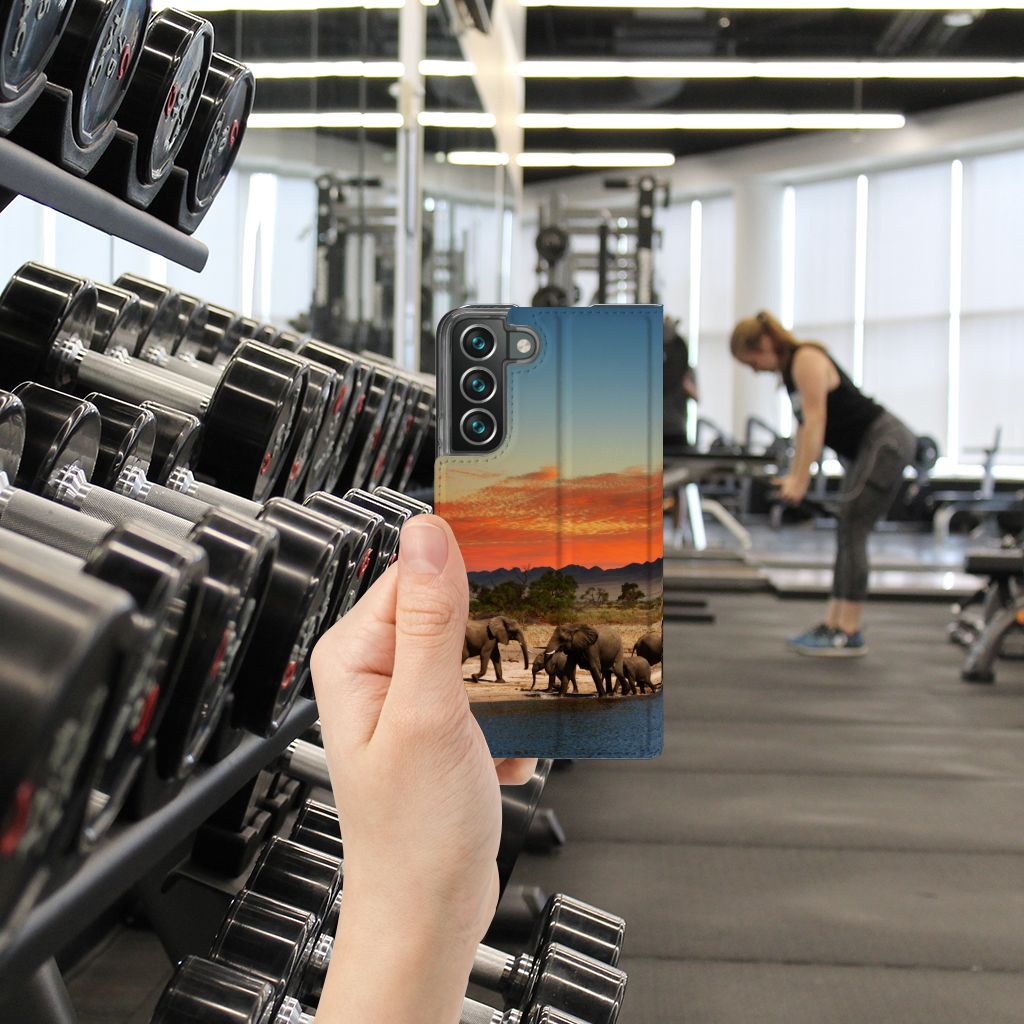 Dit hoesje is zo sterk als een olifant. Dat is goed nieuws, want jouw telefoon heeft een zeer goede bescherming nodig. Dat krijg je met dit design hoesje met print van Olifanten. De Afrikaanse olifant, het allergrootste landdier ter wereld, heeft waarschijnlijk het meest te lijden gehad van stroperij om het ivoor. Deze dieren verdienen dus een goede bescherming, net als jouw smartphone. Met een Samsung Galaxy S22 Plus Hoesje maken met olifant erop krijg je dit zeker voor elkaar. De stand case beschermt alle zijden van je telefoon en heeft aan de binnenzijde een vakje waarin je een pasje kunt opbergen. De sterke olifant komt zeer goed tot zijn recht op deze case, die aan de binnenkant een houder heeft van tpu. Ook de magneet aan de binnenkant is zeer handig. Alle zijden van de case worden bedrukt met olifanten.