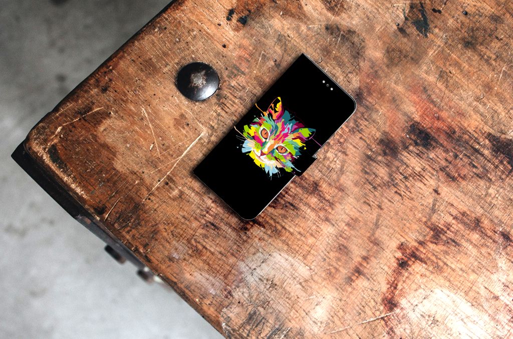 Als jij van katten houdt en op zoek bent naar een uniek hoesje, dan is dit het hoesje wat je wilt hebben. Op de voorkant van dit Leuk Hoesje vind je namelijk een mooie afbeelding van een kat in alle kleuren van de regenboog op een zwarte klassieke achtergrond. Naast dat het een mooi hoesje betreft, is het ook nog eens ontzettend handig. Zo kun je in deze bookcase wel twee á drie pasjes en briefgeld kwijt. Hiermee kun je jouw belangrijkste bezittingen op een plek bewaren in het boekhoesje en kun je jouw portemonnee voortaan thuislaten. Een bookcase heeft daarnaast ook nog het voordeel dat jouw telefoon aan alle zijdes wordt beschermd in dit leuke hoesje, dubbel zo handig dus!