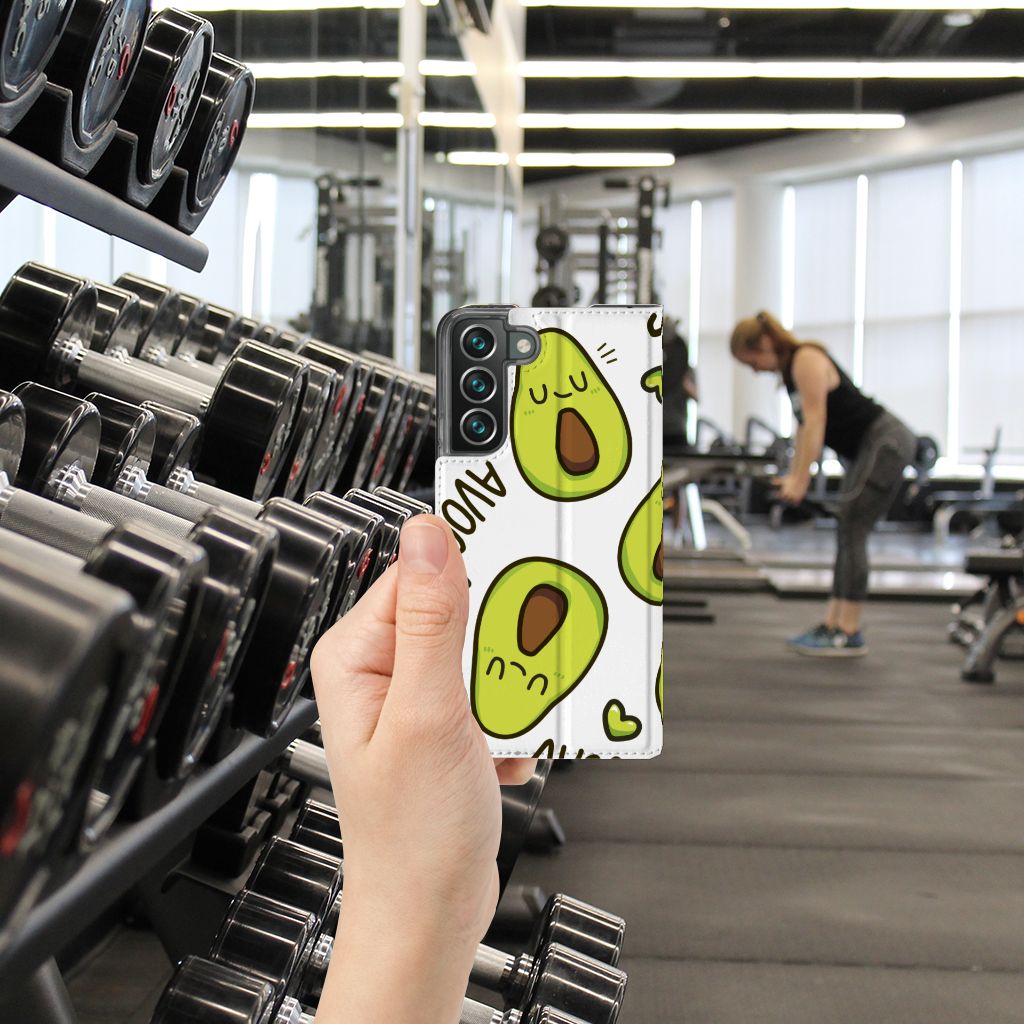 Avocado’s zijn niet alleen heel erg goed voor je, ze zijn ook super leuk op je telefoonhoesje. Dit unieke design vol schattige avocado’s zal jou en iedereen om je heen meteen opvrolijken. Nog een voordeel van dit design: deze avocado’s bederven nooit! Dit leuke Avocado Singing-ontwerp staat op een Magnet Case voor de Samsung Galaxy S22 Plus. Dit populaire smartphonehoesje heeft één vakje en is aan alle zijden bedrukt. Met de standcase zet je je telefoon gemakkelijk neer, zodat je je handen vrij hebt als je bijvoorbeeld filmpjes bekijkt. De binnenkant van de standcase is van grijs PU-leer. Dat is ideaal, omdat je daardoor niet snel vlekken ziet op je hoesje.