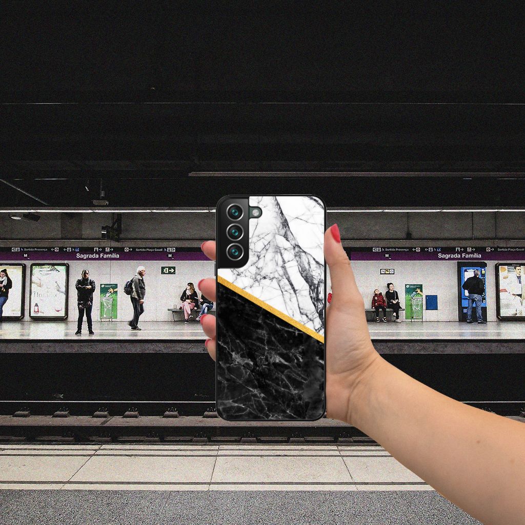 Samsung Galaxy S22 Plus Marmeren Print Telefoonhoesje Marmer Wit Zwart - Origineel Cadeau Man