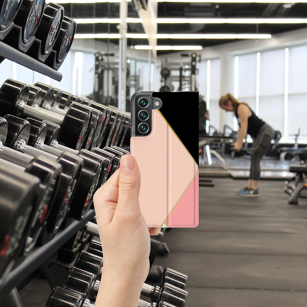 Samsung Galaxy S22 Plus Print Stand Case Zwart Roze Vormen