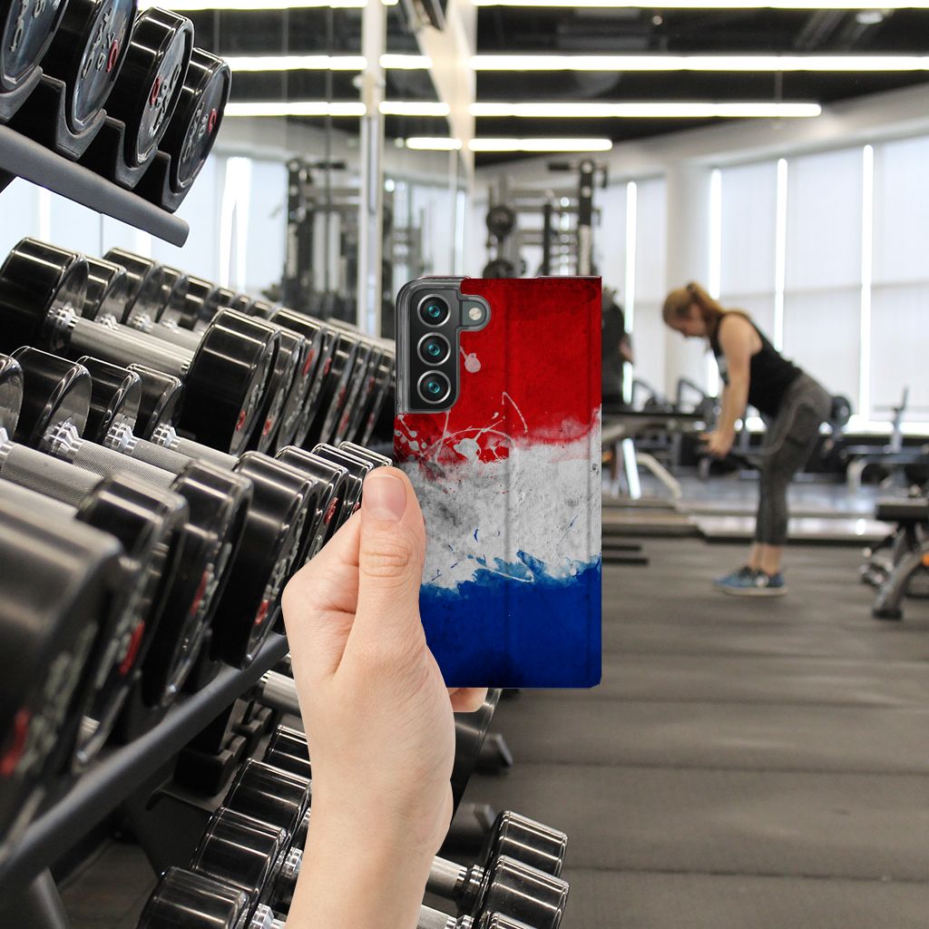 Wil jij de Nederlandse vlag altijd en overal met je meedragen? Dat doe je door dit design hoesje met Nederlandse vlag te kopen. Er zijn diverse dagen waarbij je de vlag uithangt zoals: Koningsdag, Bevrijdingsdag, Dodenherdenking (halfstok) en bij verjaardagen van leden van het Koninklijke huis. Daarnaast natuurlijk ook bij de feestelijkheden voor mensen die slagen voor hun opleiding. Maar als je een Samsung Galaxy S22 Plus Standcase koopt met Nederlandse vlag, heb je het rood, wit en blauw altijd bij de hand. Dat is ook verstandig, want met een stand case met vlag is jouw smartphone altijd goed beschermd. Stel nou dat jouw telefoon op de grond valt, dan komt dit hoesje met opbergvakje en magneet aan de binnenkant zeer goed van pas. De houder van TPU aan de binnenzijde is precies op maat gemaakt en de case heeft een standaard.