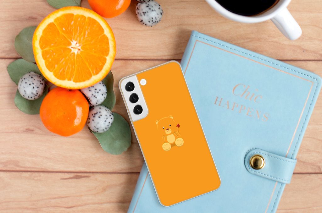 Dit vrolijke teddybeertje zou je het liefst willen knuffelen. Dat wordt lastig, op een telefoonhoesje. Maar dat betekent niet dat dit design niet evengoed onwijs schattig is. Het ontwerp is vanwege de oranje achtergrondkleur evengoed subtiel. Dit Baby Beer-design is perfect voor de knuffelberen onder ons. Dit design staat op een Telefoonhoesje met Naam voor je Samsung Galaxy S22 Plus. TPU is flexibel en onbreekbaar. Zo is je telefoon aan de achterkant en de randen heel goed beschermd. De case is aan de bovenkant bedrukt, de randen blijven transparant. Het TPU-hoesje is perfect te combineren met een screenprotector, zo zijn je telefoon en je beeldscherm perfect beschermd.