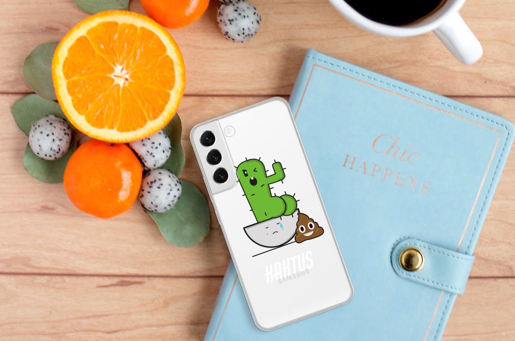 De cactus is leuk, hip en makkelijk te verzorgen. Maar wie denkt dat hij helemaal zonder aandacht kan, heeft het mis. Op dat moment komt hij in opstand, zoals op dit grappige design hoesje met cactus te zien is. Deze Telefoonhoesje met Naam met Cactus Poo design is van alle markten thuis. Het is een zeer veilig maar ook prachtig en praktisch hoesje. Dat bewijzen het flexibele en schokabsoberende materiaal en het lichte gewicht. De meeste cactussen komen uit Amerika. Daar groeien ze in hun natuurlijke omgeving, de woestijn en steppen. Maar ze groeien ook in tropische regenwouden. Dit geeft aan dat de cactus een plant is die zich makkelijk aanpast. Dat geldt dus helaas niet voor de cactus op dit tpu hoesje, maar jouw Samsung Galaxy S22 Plus is wel goed beschermd. Valt de telefoon op de grond, dan beschermen de opstaande randen van de case het touchscreen. Alleen de bovenkant van dit hoesje wordt bedrukt met de geinige kaktus. De zijkanten van de TPU case blijven transparant.