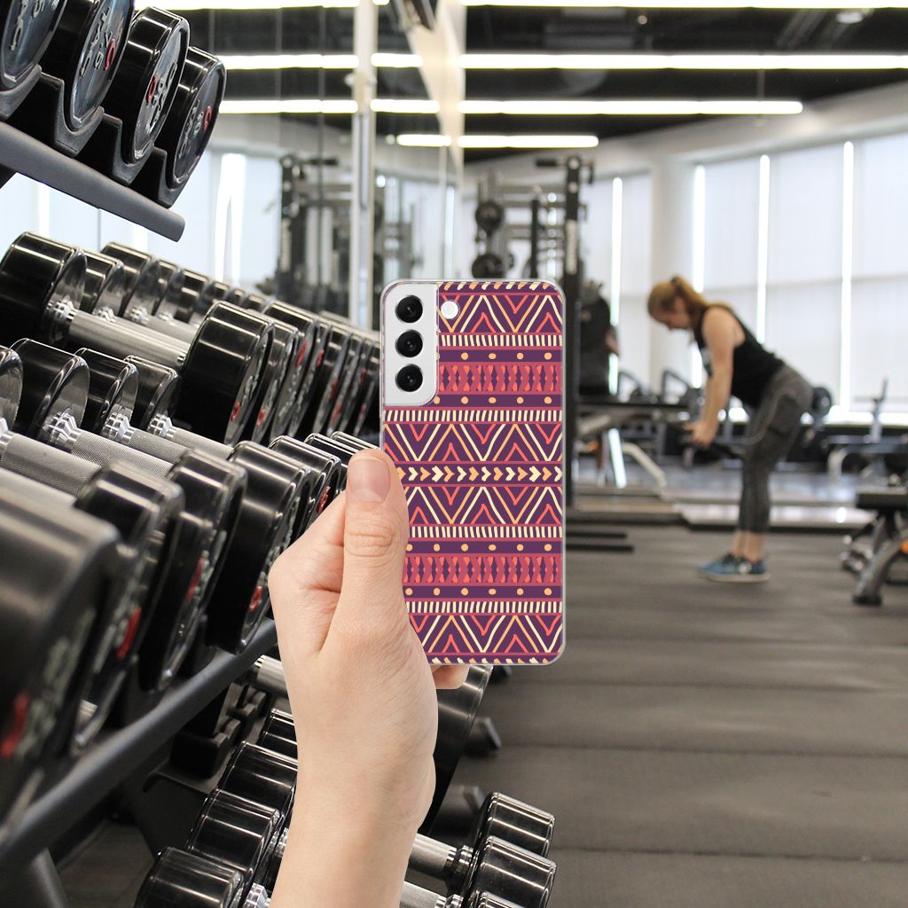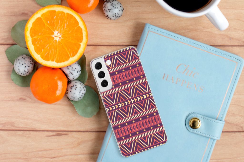 De Azteken leefden tussen 1200 en 1521 in het huidige Mexico. De mooie Aztec-patronen waar zij bekend om stonden, zien we nu nog op kleding, stoffen en tassen. Wie had toen kunnen bedenken dat we diezelfde prints honderden jaren later zelfs op een telefoonhoesje zouden vinden? Dit kleurrijke Aztec Purple-hoesje is perfect voor iedereen die een stukje geschiedenis bij zich wil dragen maar ook gewoon een mooi patroon op zijn hoesje wil. Dit vrolijke, kleurrijke ontwerp staat op een TPU bumper voor de Samsung Galaxy S22 Plus. TPU is flexibel en onbreekbaar. Zo is je telefoon aan de achterkant en de randen heel goed beschermd. De case is aan de bovenkant bedrukt, de randen blijven transparant.
