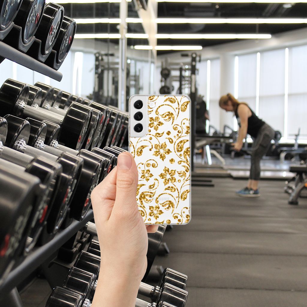 Ben je op zoek naar een uniek telefoonhoesje voor je Samsung Galaxy S22 Plus? Dan ben je bij B2C Telecom aan het juiste adres! Speciaal voor jou hebben we dit prachtige Gouden Bloemen design in onze collectie hoesjes opgenomen. Het design wordt bedrukt op een TPU Case en is gemaakt van flexibel rubber. Het design wordt alleen aan de bovenkant van het hoesje bedrukt en de randen blijven transparant. Aan de zijkanten zijn uitsparingen gemaakt waardoor je met gemak alle knoppen en poorten kunt bedienen. Wij adviseren om dit hoesje in combinatie met een screenprotector te gebruiken voor een langere levensduur van je telefoon. Wil je dit design hoesje nog iets extra's geven? Voeg dan gratis je naam of een quote toe! Is dit design hoesje toch niet helemaal wat je zocht? Ontwerp dan zelf een hoesje in ons ontwerpprogramma.