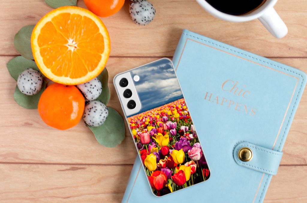 De tulp is een oer-Nederlandse bloem en heeft een lange geschiedenis. Deze Samsung Galaxy S22 Plus TPU Case met Tulpen ziet er bijzonder kleurrijk uit. Dit fleurige smartphone hoesje geeft een bijzondere bescherming van jouw apparaat. Tulpen zijn ideaal voor een kleurrijk begin van het tuinseizoen. Iedereen wordt er vrolijk van om te zien hoe deze bloemen het voorjaar kleur geven en het begin van de warmere tijd van het jaar aankondigen. Dan kan het toch niet anders of jij wordt heel erg blij van deze tpu case met tulpen? Deze tpu case is zeer flexibel en past altijd in je broekzak. Het materiaal is zeer elastisch en onbreekbaar. De case wordt niet aan alle zijden bedrukt met tulpen. De randen blijven transparant. Je kunt ook zelf een tpu case maken met daarop jouw favoriete bloem.