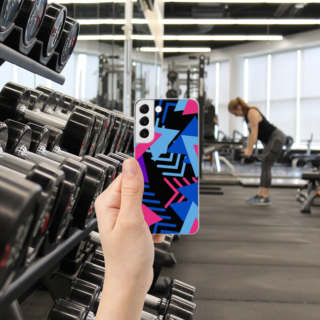 Dit fraaie hoesje met het design Funky Triangle is alles behalve eenvoudig en sober. Dat komt goed uit, want je hebt natuurlijk ook geen doorsnee telefoon gekocht. Mocht je dat wel hebben gedaan, dan wordt hij meteen speciaal als je een Samsung Galaxy S22 Plus TPU Hoesje koopt voor een spotprijsje. Een ding is zeker: opvallen ga je beslist met dit hoesje met paarse, roze en blauwe driehoeken. Jij zult in je element zijn met dit design hoesje met paarse, roze en blauwe driehoeken, omdat het er schitterend uitziet en jouw telefoon zeer goed beschermt. Het smartphonehoesje beschermt jouw telefoon vooral aan de zijkanten en achterkant en wordt alleen aan de bovenzijde bedrukt met paarse, roze en blauwe driehoeken. De zijkanten blijven doorzichtig. De paarse, roze en blauwe driehoeken maken de case helemaal af.