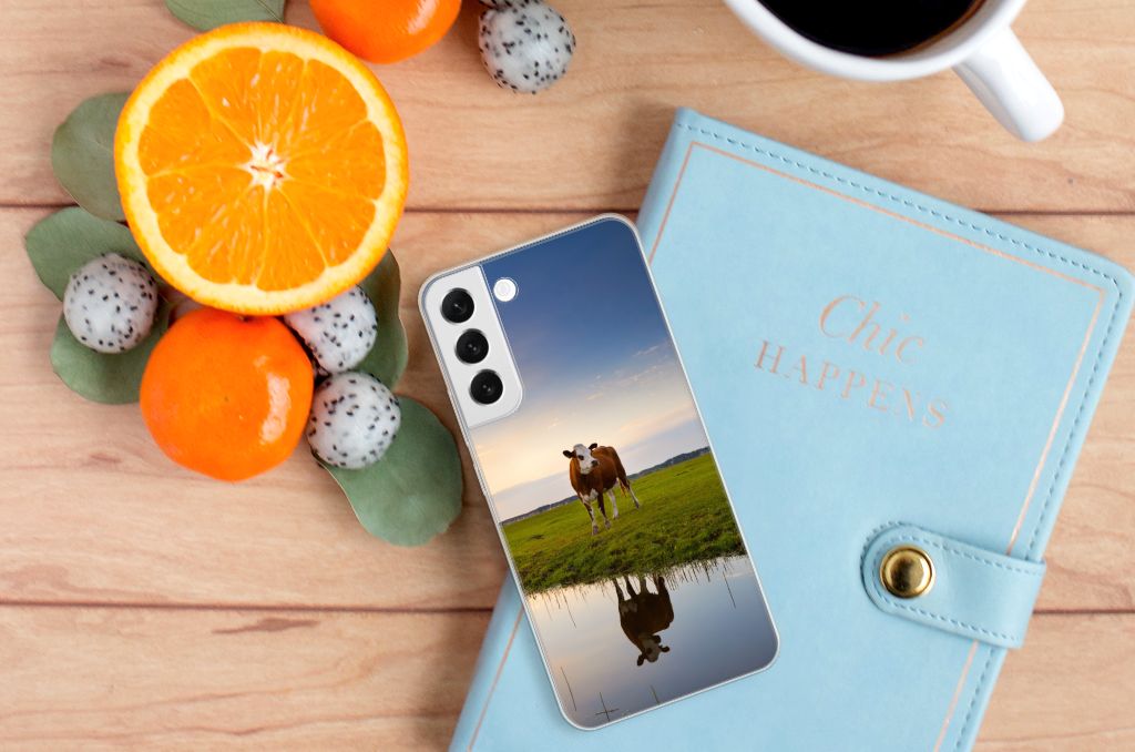 Het levert een idyllisch plaatje op, dit hoesje met een koe en ondergaande zon op de achtergrond. Door een koe buiten te laten lopen en grazen, hebben ze minder kans om ziek te worden. De Koe graast het liefst met soortgenoten, al zijn deze een stukje van de koe op de case verwijderd. Dit levert ook een mooi plaatje op, zoals je kunt zien op dit design hoesje. Dit tpu hoesje met koeien ziet er flexibel uit en is voorzien van alle uitsparingen. Een Samsung Galaxy S22 Plus TPU Hoesje met koeien beschermt jouw smartphone vooral aan de achterkant en zijkanten. De zijkanten blijven transparant, de rest van het hoesje is bedrukt. Koeien herkauwen het liefst liggend, behalve wanneer het regent. Zo goed als grazen voelt voor koeien, zo duurzaam zal jouw smartphone blijven met dit design hoesje. Het TPU is schokabsorberend en niet te breken. De TPU case past altijd in je broekzak.