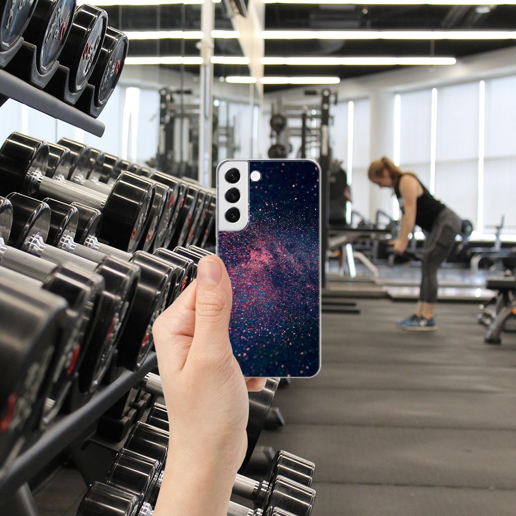 Je waant je in de zevende hemel met dit kunstzinnige, glitterachtige design hoesje met paarse en blauwe kleuren tegen een inktzwarte achtergrond. Het smartphone hoesje heeft ook een wat science fiction achtige allure. Met deze design Stars case zul je zeker opvallen. Als dit je bedoeling is, bestel dat snel dit waanzinnig mooie product voor je Samsung Galaxy S22 Plus. Het telefoonhoesje is van alle gemakken voorzien en combineert een hele fraaie uitstraling met maximaal comfort. Bovendien is het gemaakt van zeer stevig en flexibel materiaal. Het unieke design, door B2C Telecom ontworpen, staat op een TPU Hoesje. Dit hoesje wordt alleen aan de bovenkant bedrukt en is zeer flexibel. De randen van het hoesje blijven transparant en worden niet bedrukt. Met dit hoesje past jouw telefoon altijd in je broekzak.