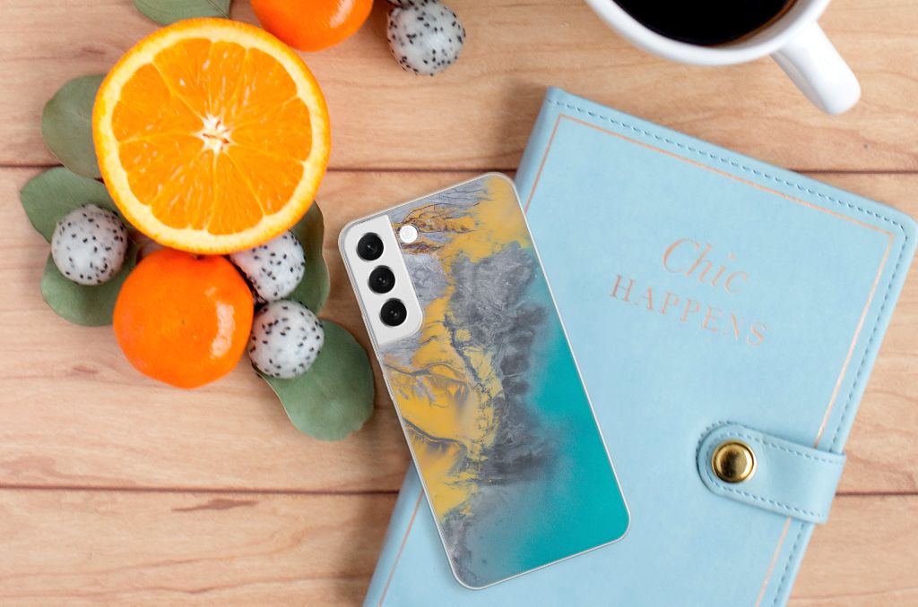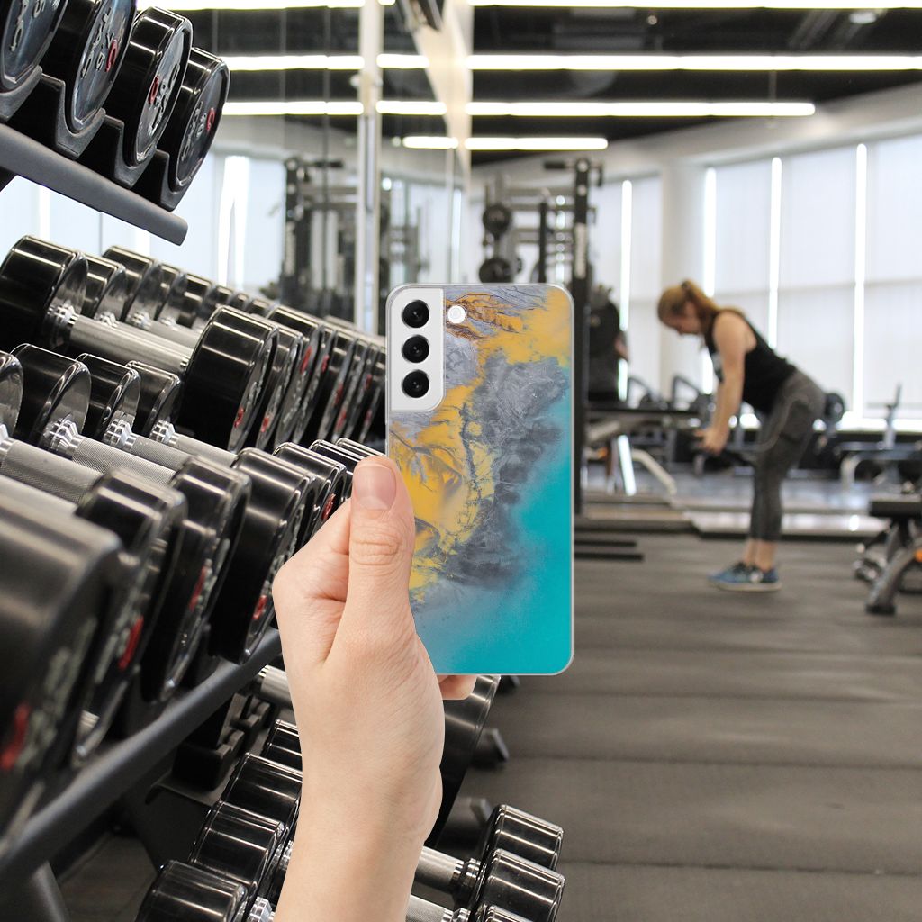 Deze Samsung Galaxy S22 Plus TPU Siliconen Hoesje met Marble Blue Gold is het waard om een blokje voor om te fietsen. Dit is echter helemaal niet nodig. Als je het hoesje met marmer blauw met goud nu bestelt heb je het supersnel in huis. Je kunt er bij wijze van spreken voor de brievenbus op blijven wachten. Je hebt diverse marmersoorten in veel verschillende kleuren. We hebben enkele mooie kleuren op design hoesjes gezet, zoals in dit geval marmer blauw met goud. Het marmer wordt bedrukt op de achterkant van de tpu case, die beschikt over alle nodige uitsparingen waardoor je alle knoppen en poorten van je smartphone kunt bedienen. Verder is de case met marmer blauw met goud gemaakt van zeer flexibel materiaal. De rijkheid aan kleuren en variaties in afwerking is een fraaie eigenschap van marmer. Dit tpu hoesje met marmer blauw met goud heeft ook veel schitterende eigenschappen en is de ideale bescherming voor jouw smartphone