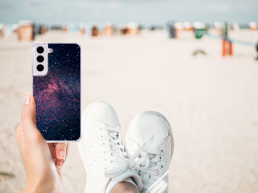 Ben je op zoek naar een uniek telefoonhoesje voor je Samsung Galaxy S22? Dan ben je bij B2C Telecom aan het juiste adres! Speciaal voor jou hebben we dit prachtige Stars design in onze collectie hoesjes opgenomen. Het design wordt bedrukt op een Shockproof Case en is gemaakt van flexibel rubber. Het hoesje is perfect voor de actieve smartphonegebruiker door de opstaande randen/hoeken. Denk aan mensen die veel sporten, reizen of wandelen en net iets meer zekerheid willen als het op hun geliefde telefoon aankomt. Het design wordt alleen aan de bovenkant van het hoesje bedrukt en de randen blijven transparant. Aan de zijkanten zijn uitsparingen gemaakt waardoor je met gemak alle knoppen en poorten kunt bedienen. Wij adviseren om dit hoesje in combinatie met een screenprotector te gebruiken voor een langere levensduur van je telefoon. Wil je dit hoesje nog iets extra's geven? Voeg dan gratis je naam of een quote toe! Is dit design hoesje toch niet helemaal wat je zocht? Ontwerp dan zelf een hoesje in ons ontwerpprogramma.