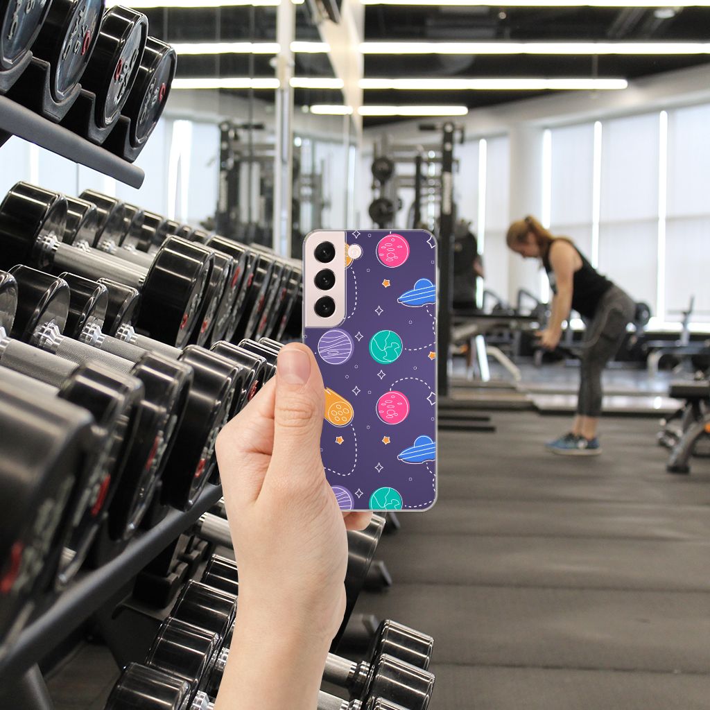 Ben je een beetje geïnteresseerd in buitenaards leven? Dan kan je wel eens enthousiast raken van deze Samsung Galaxy S22 Silicone Back Cover met Space print. Dus mensen die van science fiction houden zullen deze case ongetwijfeld mooi vinden. Er zijn verschillende planeten en vliegende schotels te ontdekken in dit design hoesje. Dit kunstwerkje is voor heel weinig geld te bestellen op onze website. Je krijgt er maximale bescherming van je smartphone voor terug. De TPU case wordt alleen aan de bovenkant met space bedrukt en is zeer flexibel. De randen van het hoesje blijven transparant en worden niet bedrukt. Je zult ontdekken dat dit hele stevige telefoonhoesje een heel goede bescherming biedt tegen alle vormen van schade. Met dit hoesje hoef je niet bang te zijn dat er krassen op je design komen of scheuren in je scherm.
