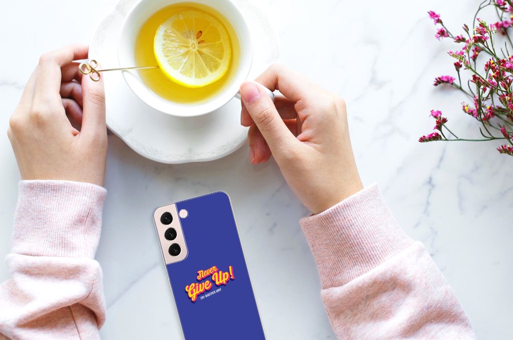 Ben je op zoek naar een uniek telefoonhoesje voor je Samsung Galaxy S22? Dan ben je bij B2C Telecom aan het juiste adres! Speciaal voor jou hebben we dit prachtige Never Give Up design in onze collectie hoesjes opgenomen. Het design wordt bedrukt op een Siliconen hoesje met naam en is gemaakt van flexibel rubber. Het design wordt alleen aan de bovenkant van het hoesje bedrukt en de randen blijven transparant. Aan de zijkanten zijn uitsparingen gemaakt waardoor je met gemak alle knoppen en poorten kunt bedienen. Wij adviseren om dit hoesje in combinatie met een screenprotector te gebruiken voor een langere levensduur van je telefoon. Wil je dit design hoesje nog iets extra's geven? Voeg dan gratis je naam of een quote toe! Is dit design hoesje toch niet helemaal wat je zocht? Ontwerp dan zelf een hoesje in ons ontwerpprogramma.