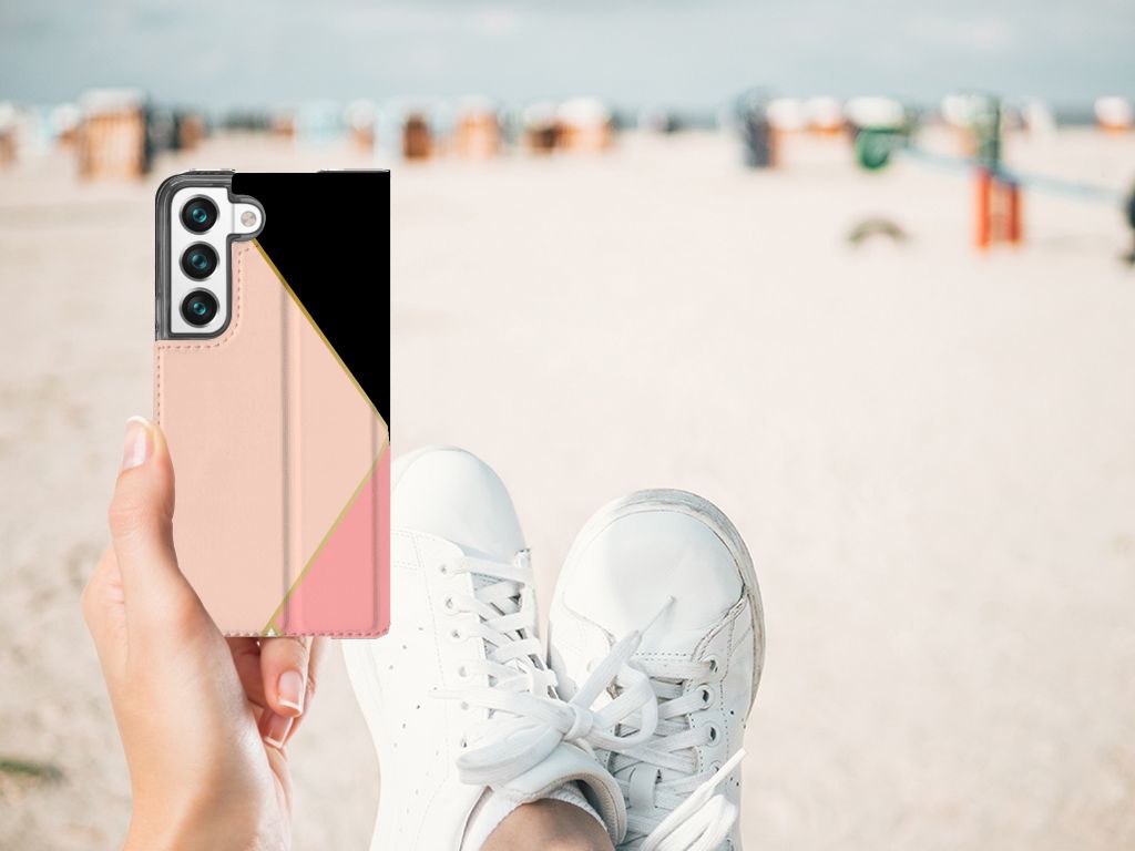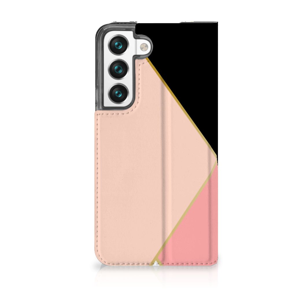 Samsung Galaxy S22 Print Stand Case Zwart Roze Vormen