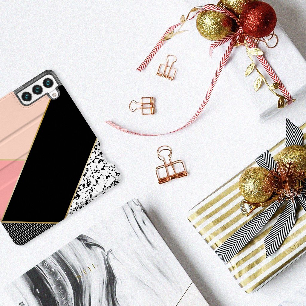 - Met een hoesje met roze, zwarte en witte vlakken op alle zijden blijft jouw telefoon in tact.