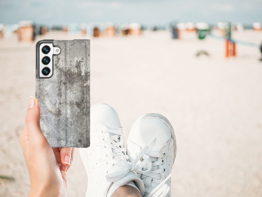 Dit stoere design is perfect voor iedereen die niet van tierlantijntjes houdt. Beton is een stoer materiaal dat tegenwoordig helemaal hip is in industriële interieurs. Maar ook op accessoires en nu dus ook op telefoonhoesjes is het helemaal on trend. Het hoesje heeft een realistische betonlook. Dit ontwerp staat op een Standcase voor de Samsung Galaxy S22. Dit populaire smartphonehoesje met het beton-design heeft één vakje voor een pasje of briefgeld en is aan alle zijden bedrukt. Met de standcase zet je je telefoon gemakkelijk neer, zodat je je handen vrij hebt als je bijvoorbeeld een video wilt kijken. De binnenkant van de standcase is van grijs PU-leer. Dat is fijn, omdat je daardoor niet snel vlekken ziet op je hoesje.