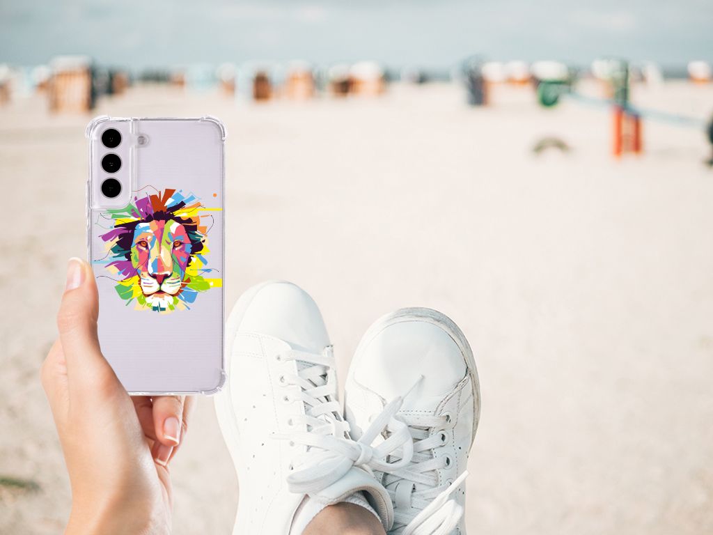 Ben je op zoek naar een uniek telefoonhoesje voor je Samsung Galaxy S22? Dan ben je bij B2C Telecom aan het juiste adres! Speciaal voor jou hebben we dit prachtige Lion Color design in onze collectie hoesjes opgenomen. Het design wordt bedrukt op een Stevig Bumper Hoesje en is gemaakt van flexibel rubber. Het hoesje is perfect voor de actieve smartphonegebruiker door de opstaande randen/hoeken. Denk aan mensen die veel sporten, reizen of wandelen en net iets meer zekerheid willen als het op hun geliefde telefoon aankomt. Het design wordt alleen aan de bovenkant van het hoesje bedrukt en de randen blijven transparant. Aan de zijkanten zijn uitsparingen gemaakt waardoor je met gemak alle knoppen en poorten kunt bedienen. Wij adviseren om dit hoesje in combinatie met een screenprotector te gebruiken voor een langere levensduur van je telefoon. Wil je dit hoesje nog iets extra's geven? Voeg dan gratis je naam of een quote toe! Is dit design hoesje toch niet helemaal wat je zocht? Ontwerp dan zelf een hoesje in ons ontwerpprogramma.