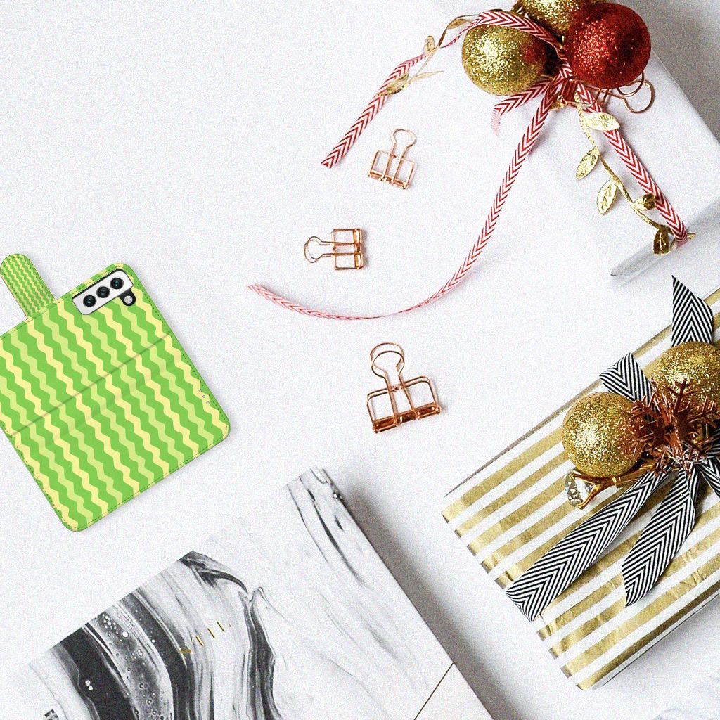Dit groene design hoesje met groene golven is speciaal ontworpen voor jouw telefoon. We hebben een vleugje geel toegevoegd, zodat er sprake is van variatie. Dit Waves Green hoesje ziet er flitsend uit. Dat kan ook niet anders, als je weet dat we veel energie steken in het bedenken van originele designs. Een heel strak Samsung Galaxy S22 Telefoon Hoesje, met zeer veel opties. Past dit groene design hoesje met golven goed bij jou? Bestel het dan vandaag nog, tegen zeer lage kosten. Het design staat op een boekhoesje. Dit smartphonehoesje beschermt jouw telefoon aan alle zijden en beschikt over verschillende opbergvakjes voor pasjes en briefgeld. De case sluit perfect af met het lipje aan de buitenkant. De houder aan de binnenzijde is van TPU. Alle zijden van het groene hoesje met golven worden bedrukt, inclusief het lipje.
