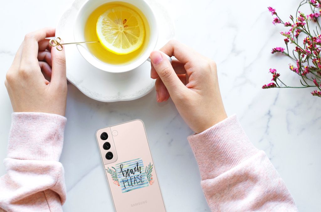 Dit design is perfect voor iedereen die geen genoeg kan krijgen van zon, zee en strand. Met dit Telefoonhoesje met Naam voor de Samsung Galaxy S22 draag je de zomer altijd een beetje bij je. Dankzij de tekst ‘Beach Please’ ziet iedereen dat je een echte zonaanbidder bent. Het boho beach-ontwerp is vrolijk dankzij de subtiele bloemen en de leuke kleurtjes. TPU is flexibel en heel erg sterk. Zo is je telefoon aan de achterkant en de randen heel goed beschermd. De case is aan de bovenkant bedrukt, de randen blijven transparant. Het TPU-hoesje is perfect te combineren met een screenprotector, zo zijn je telefoon en je beeldscherm altijd goed beschermd.