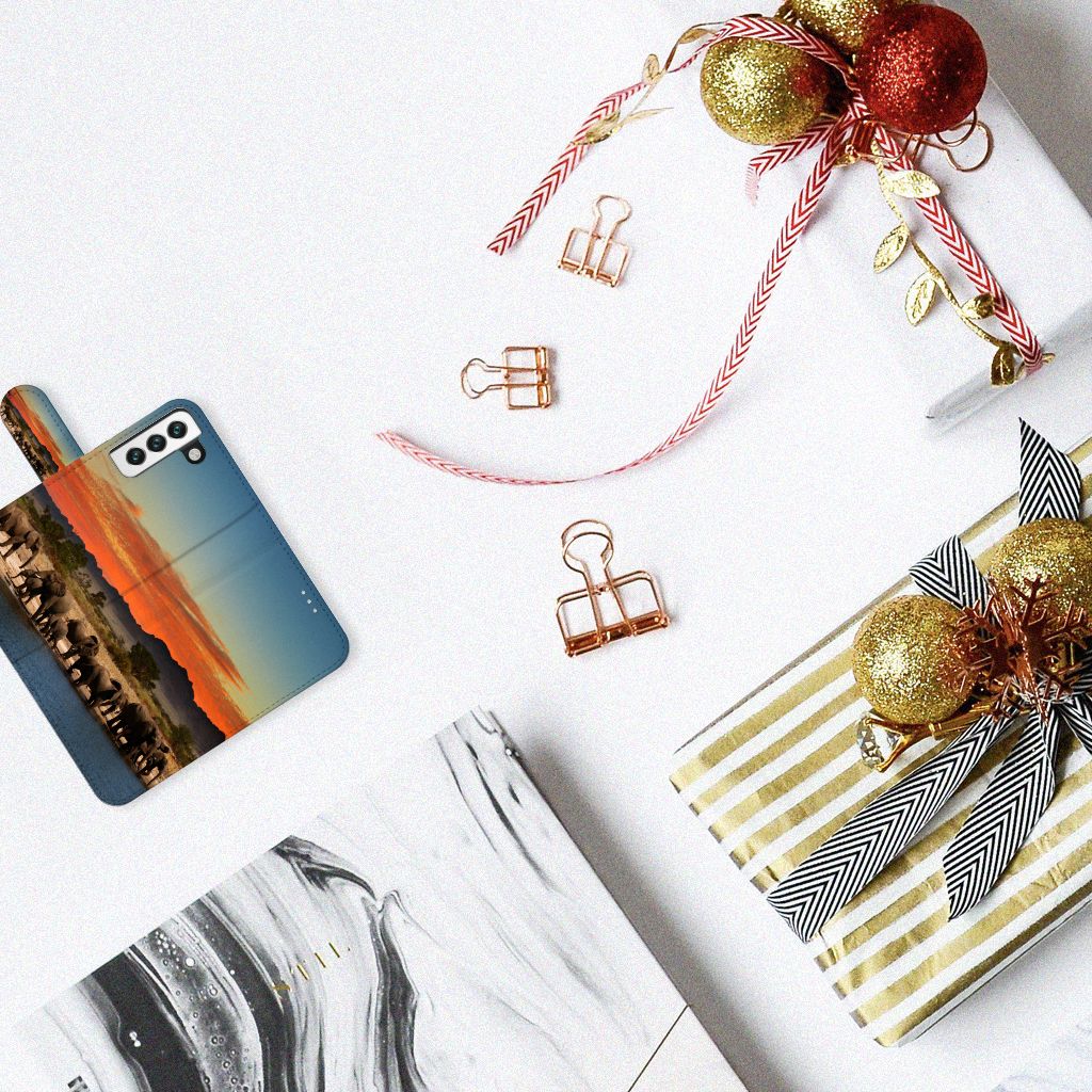 Samsung Galaxy S22 Telefoonhoesje met ruimte voor 3 pasjes Olifanten