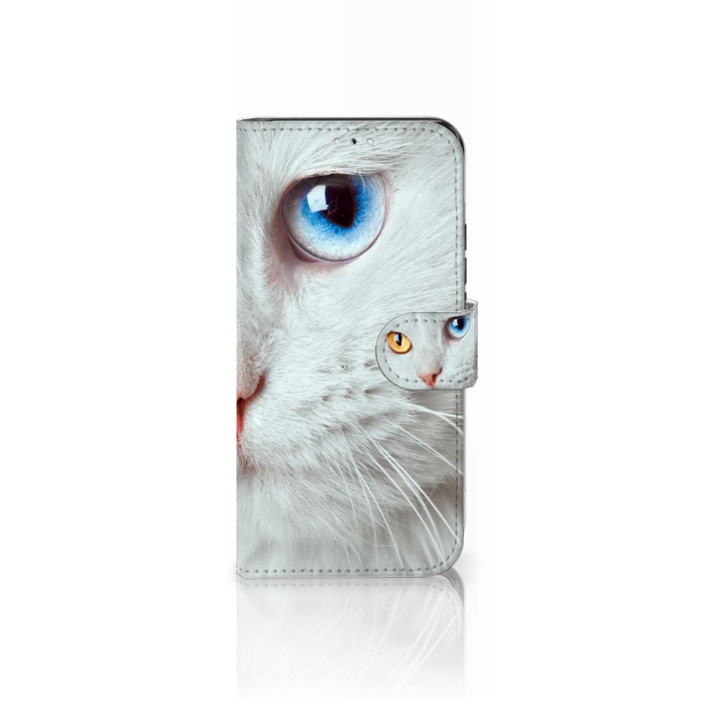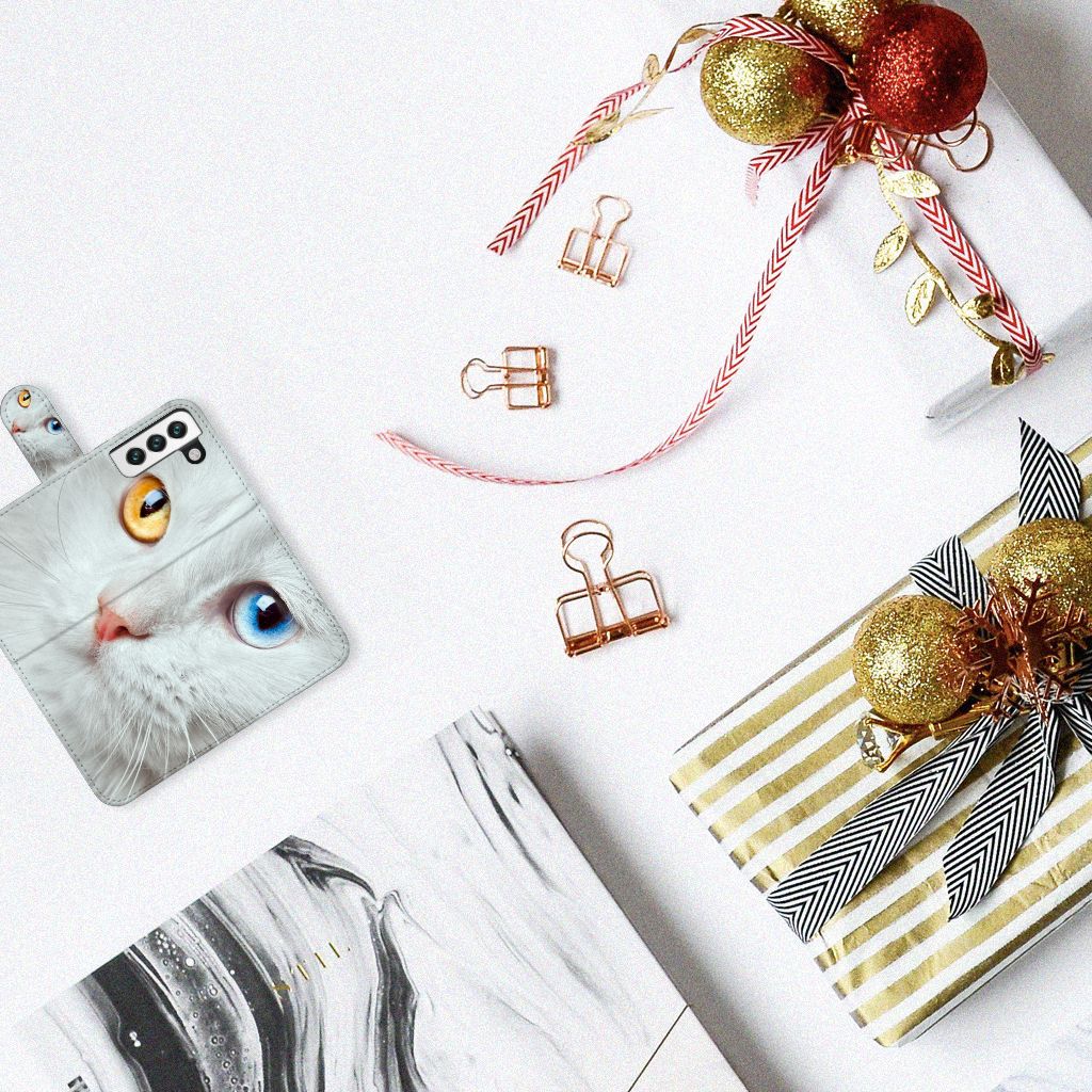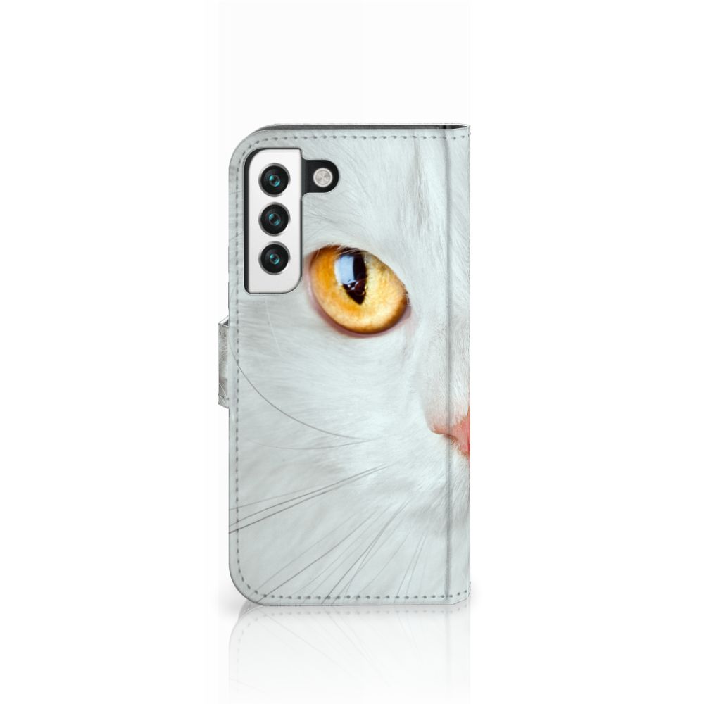 Samsung Galaxy S22 Telefoonhoesje met magnetisch lipje als sluiting Witte Kat